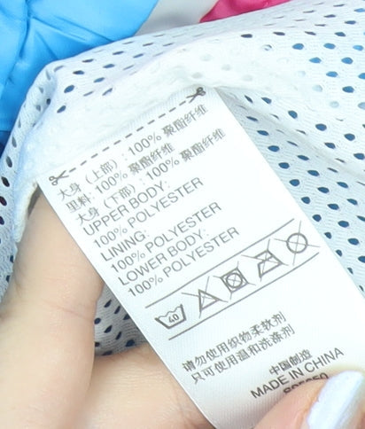Adidas Womens Pink Blue Windbreaker Jacket Size 12 Hooded Sports