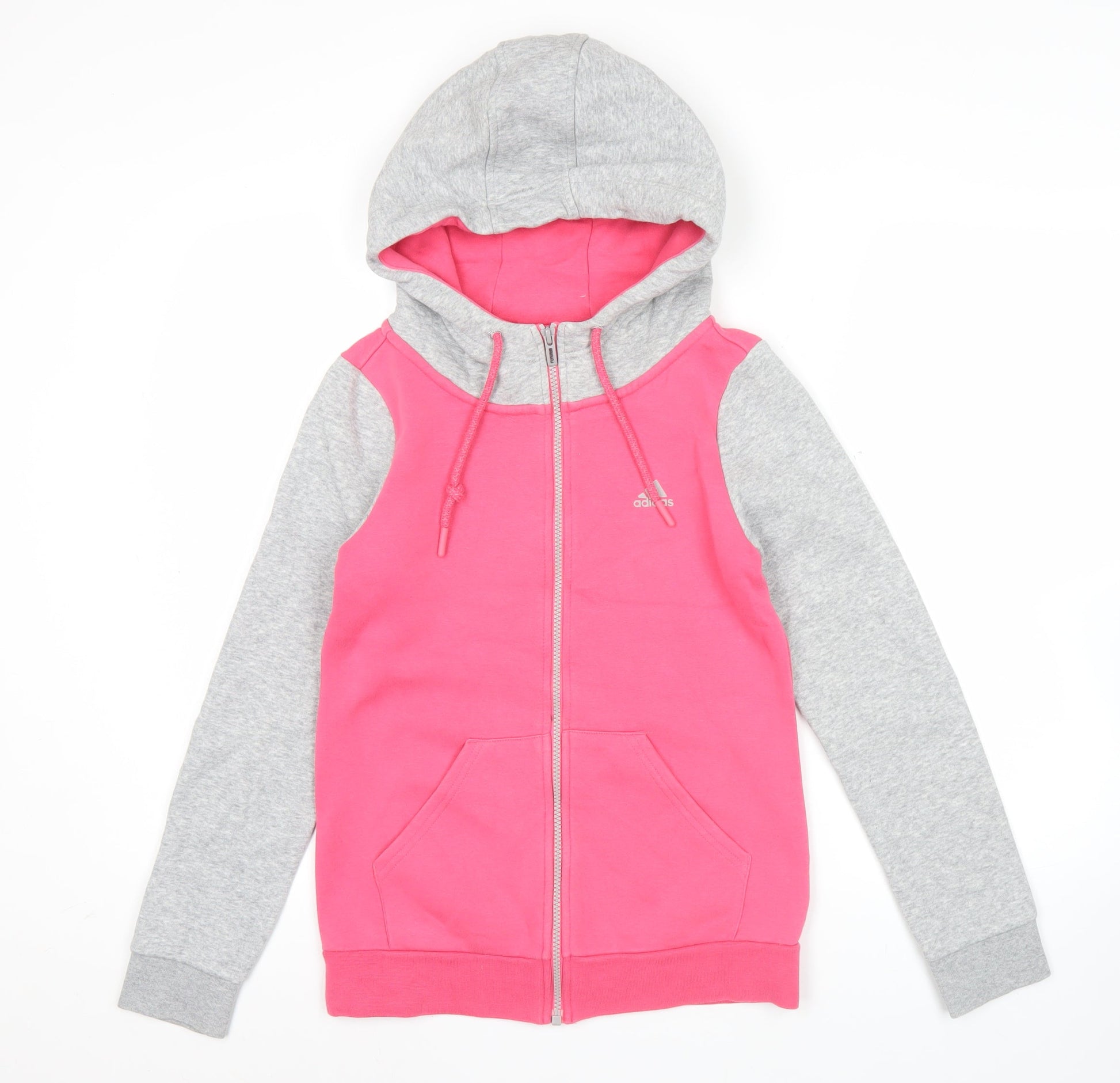 Adidas Womens Pink Grey Full Zip Hoodie Size 8 UK Cotton Blend