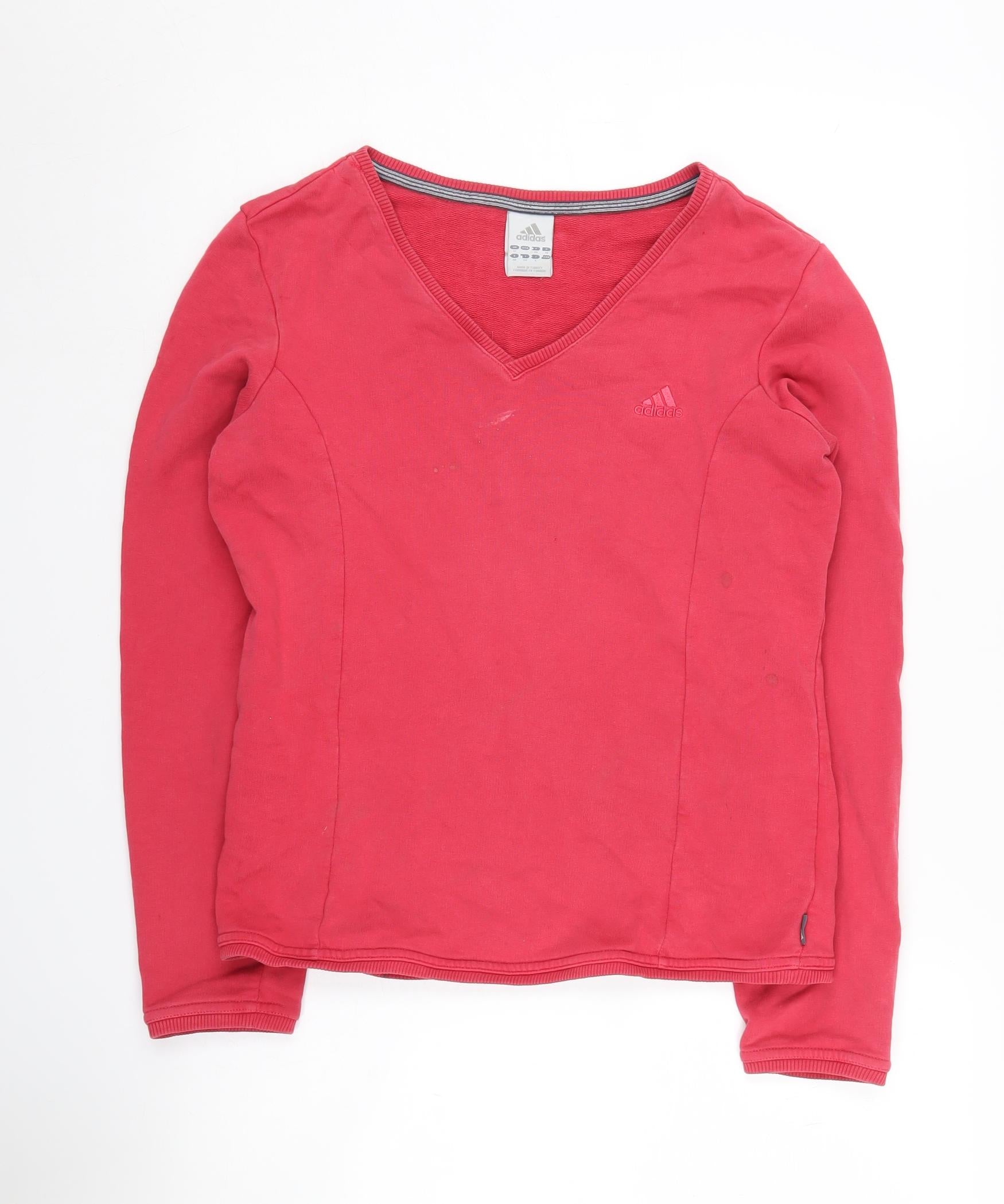Adidas Women's Red Sweatshirt Size 12, V-Neck Casual