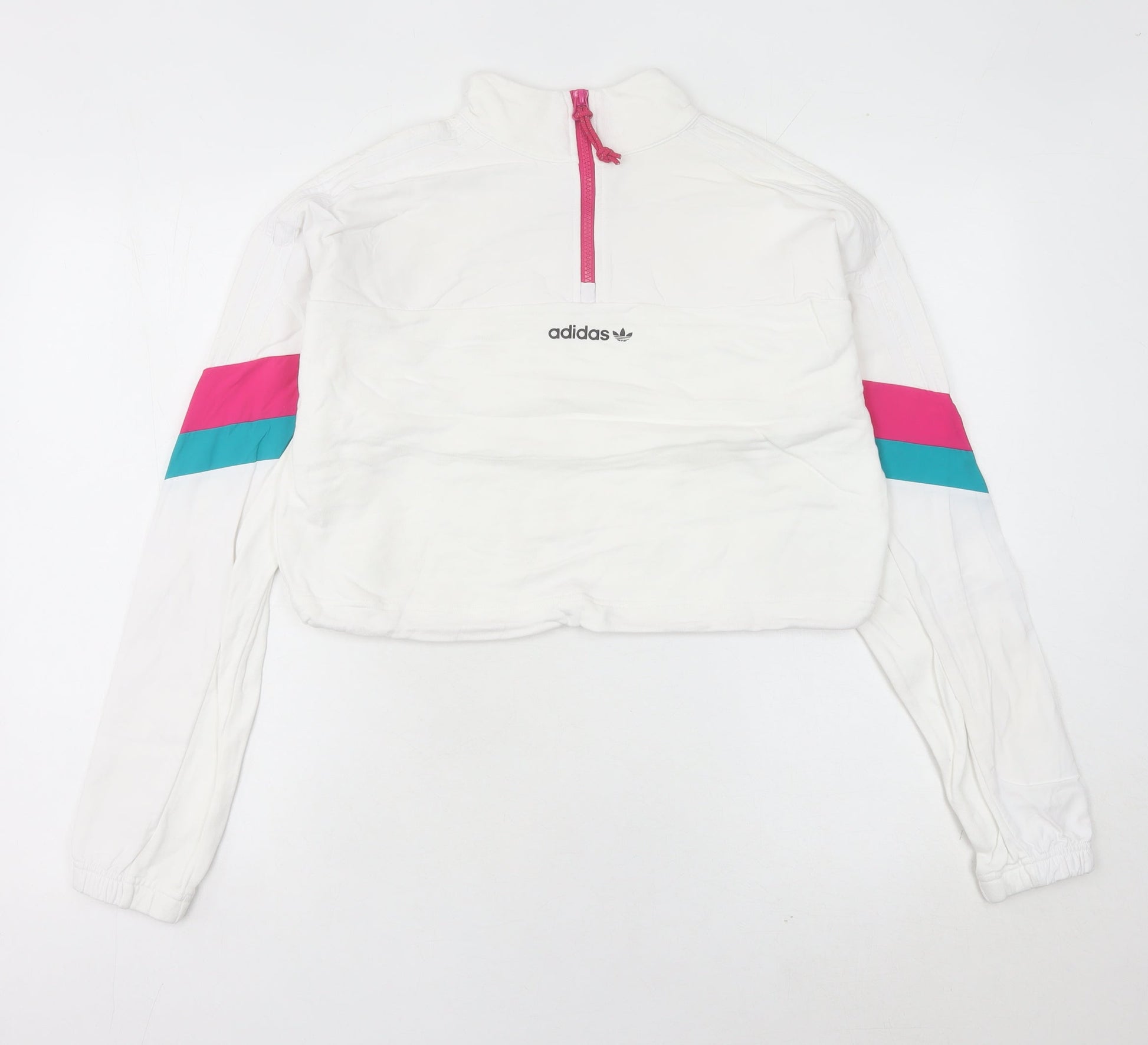 Adidas Women's White 1/4 Zip Sweatshirt UK 10 Logo Sportswear