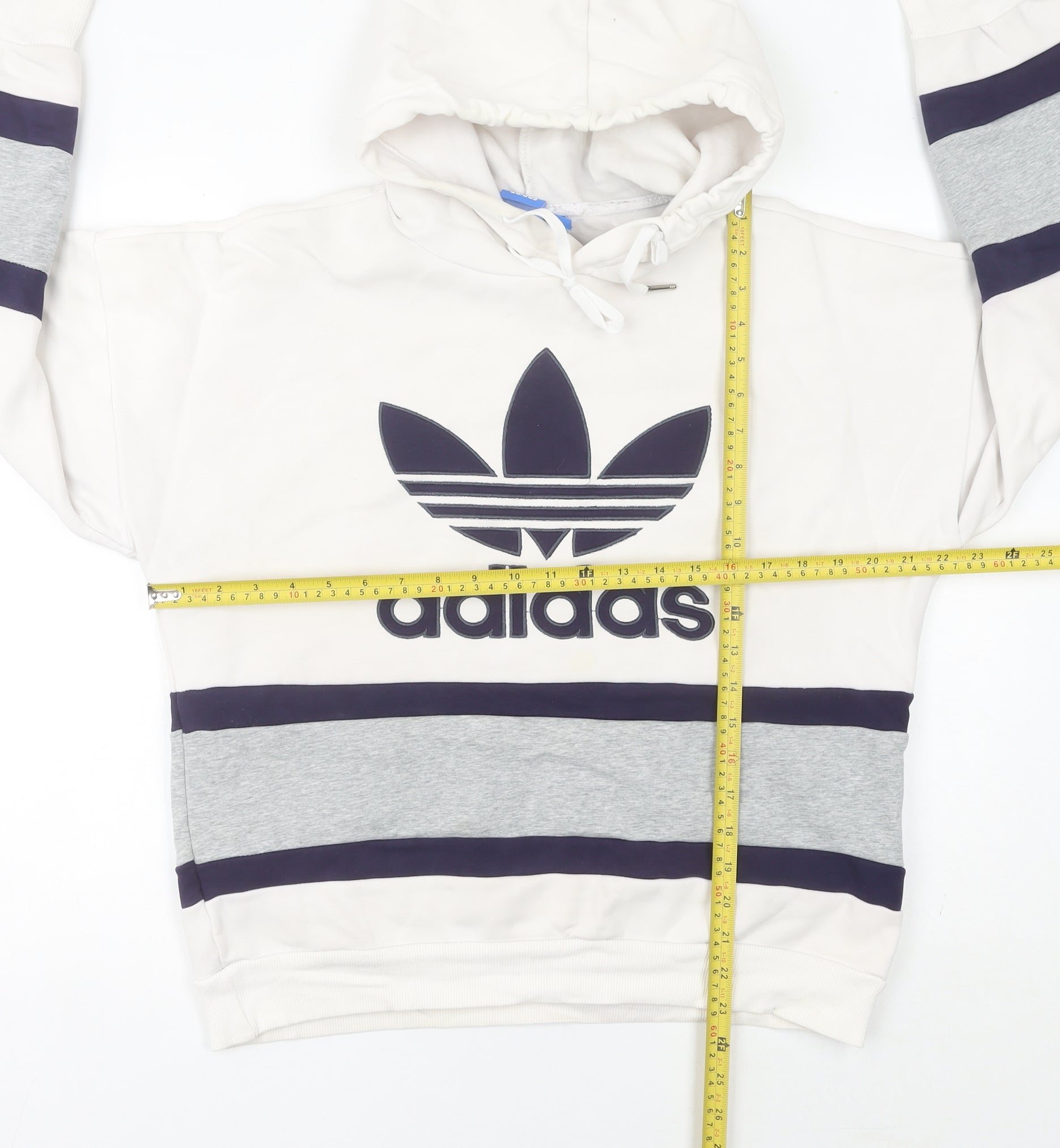 Adidas Womens White Hoodie Size 12 Logo Pullover Sweatshirt