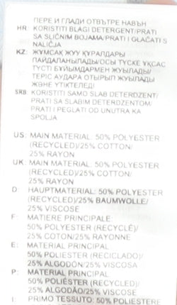 - Material Breakdown: 50% Polyester 25% Cotton 25% Viscose