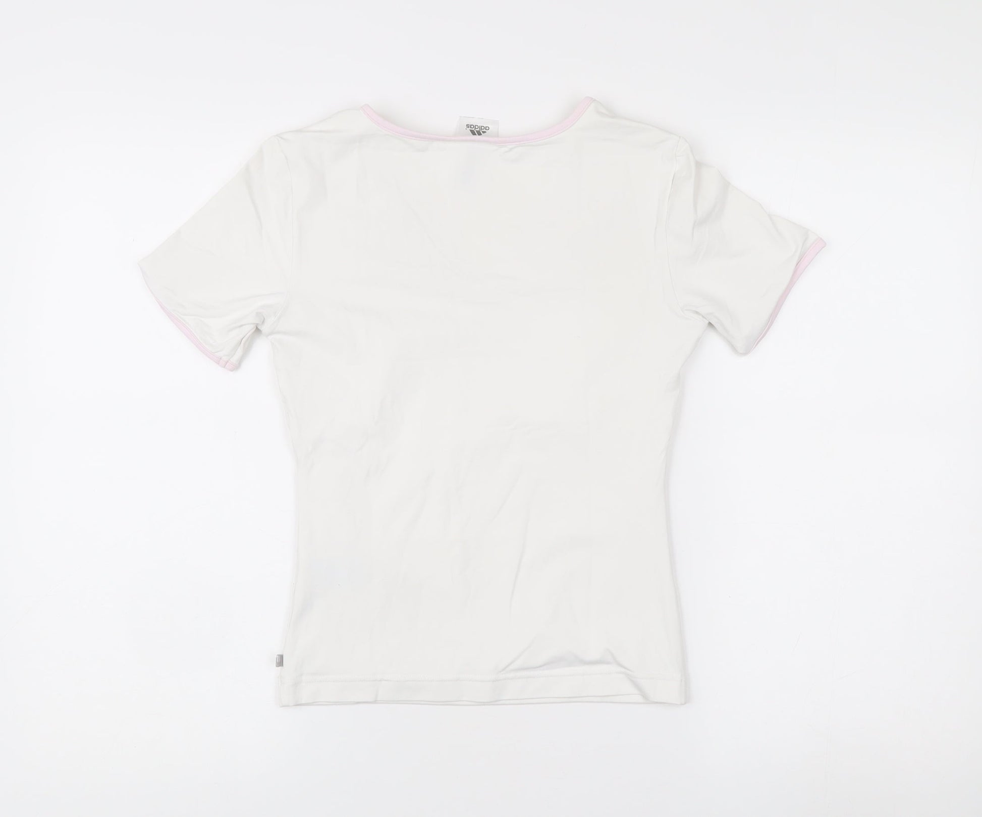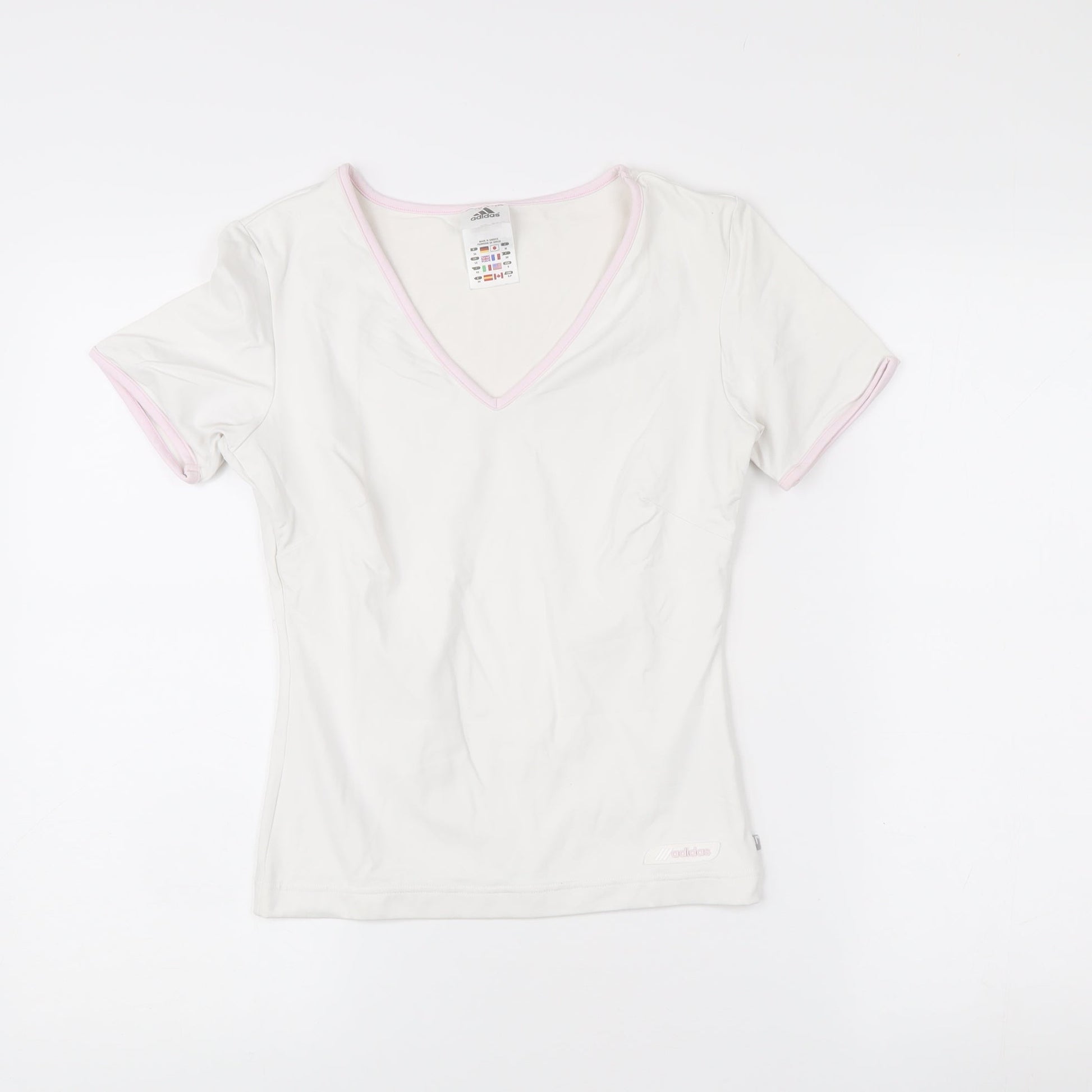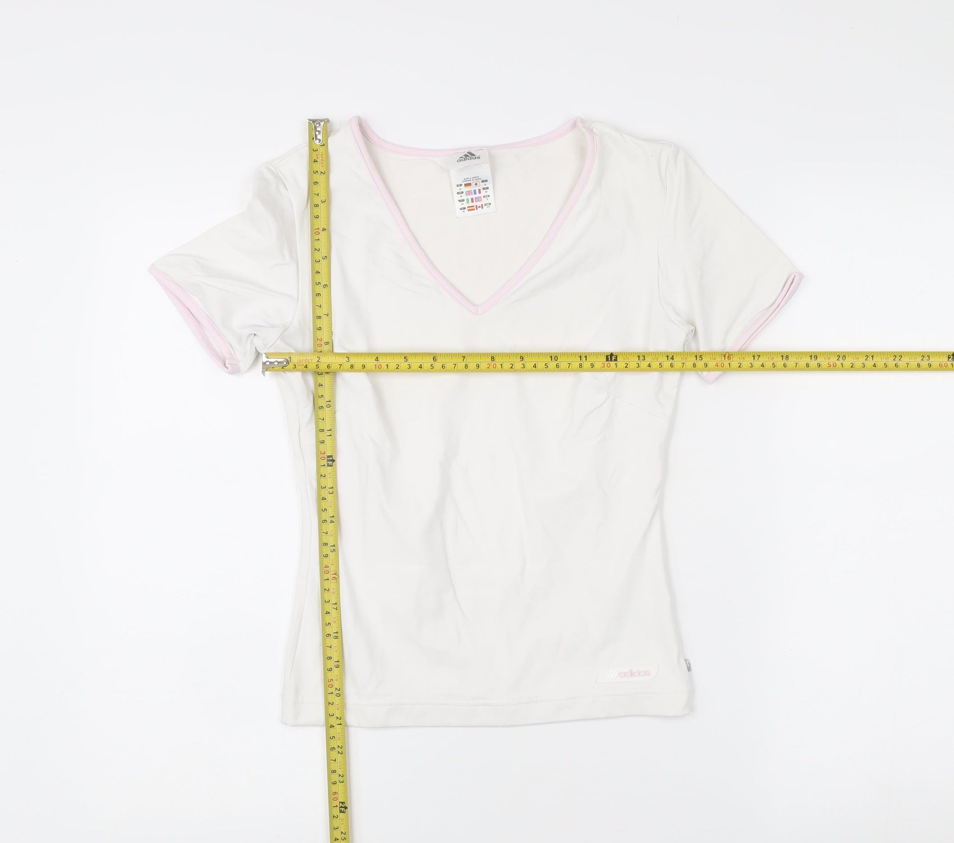 Adidas Womens White Slim Fit V-Neck Activewear T-Shirt Size 10