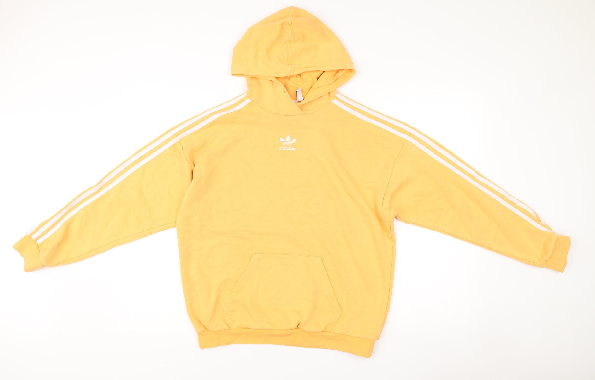 Adidas Womens Yellow Pullover Hoodie UK 10 Small Cotton Blend