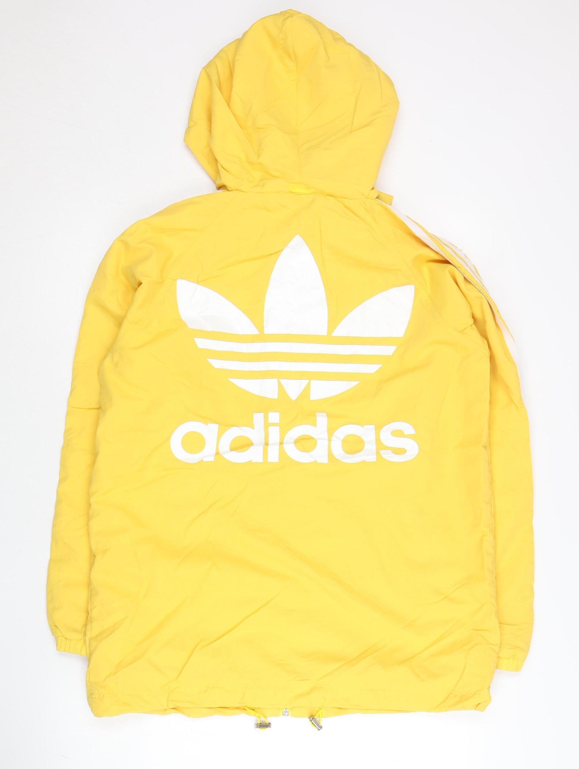 Adidas Womens Yellow Windbreaker Jacket UK 6 Hooded Full Zip Lightweight