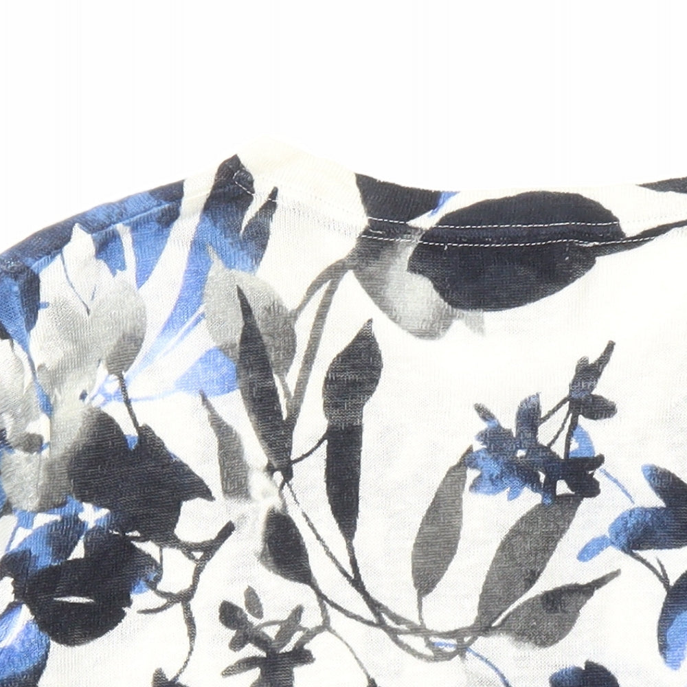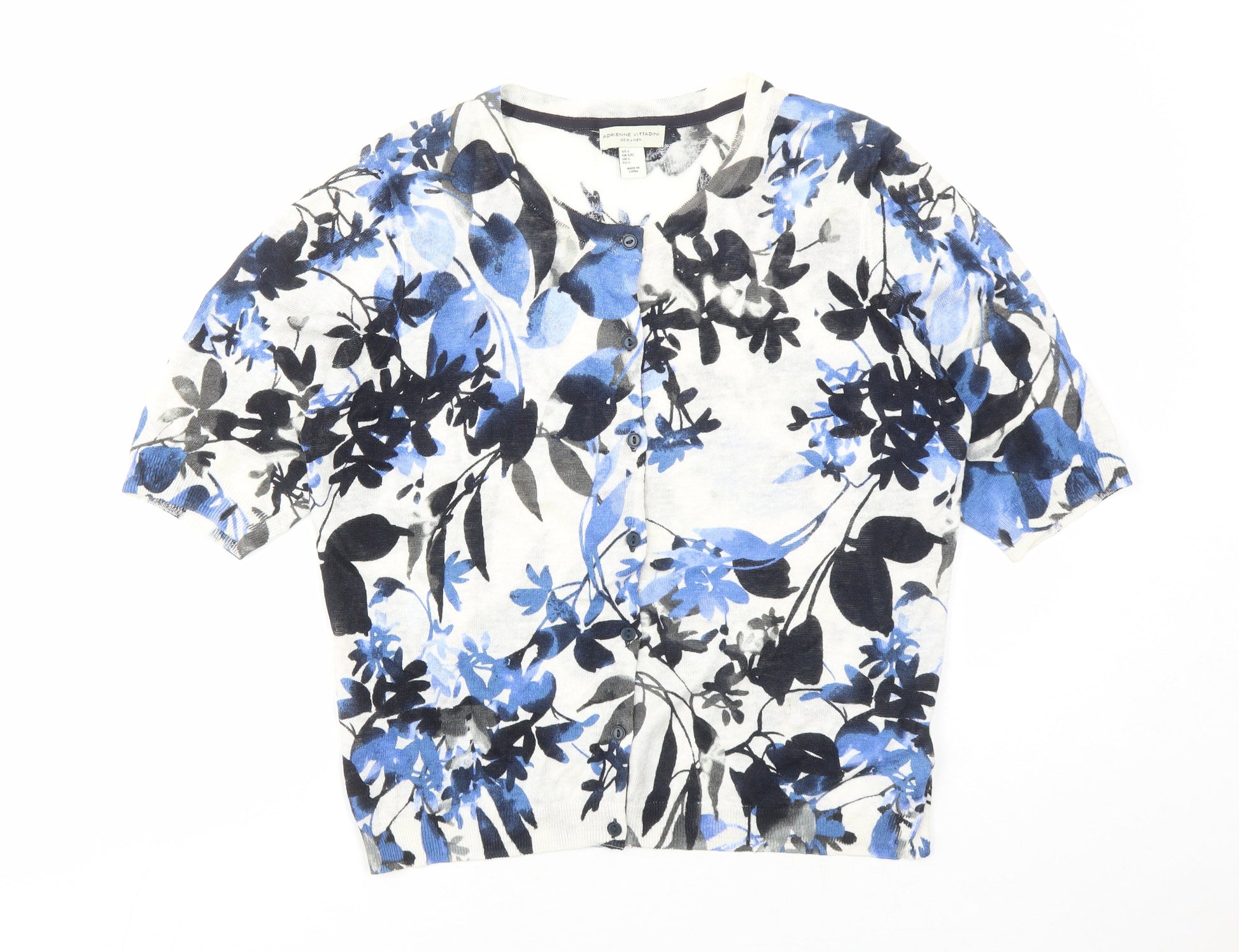 Adrienne Vittadini Womens Blue Round Neck Floral Linen Cardigan Jumper Size L