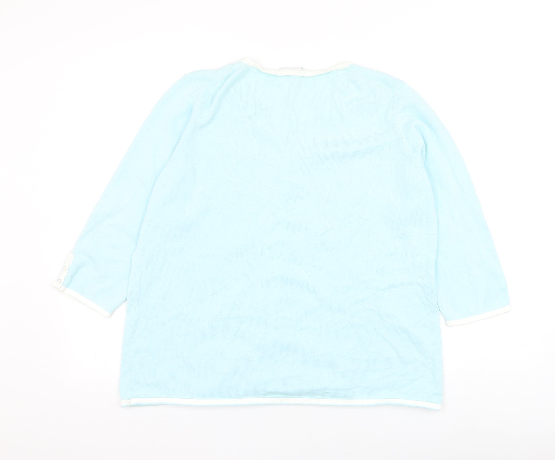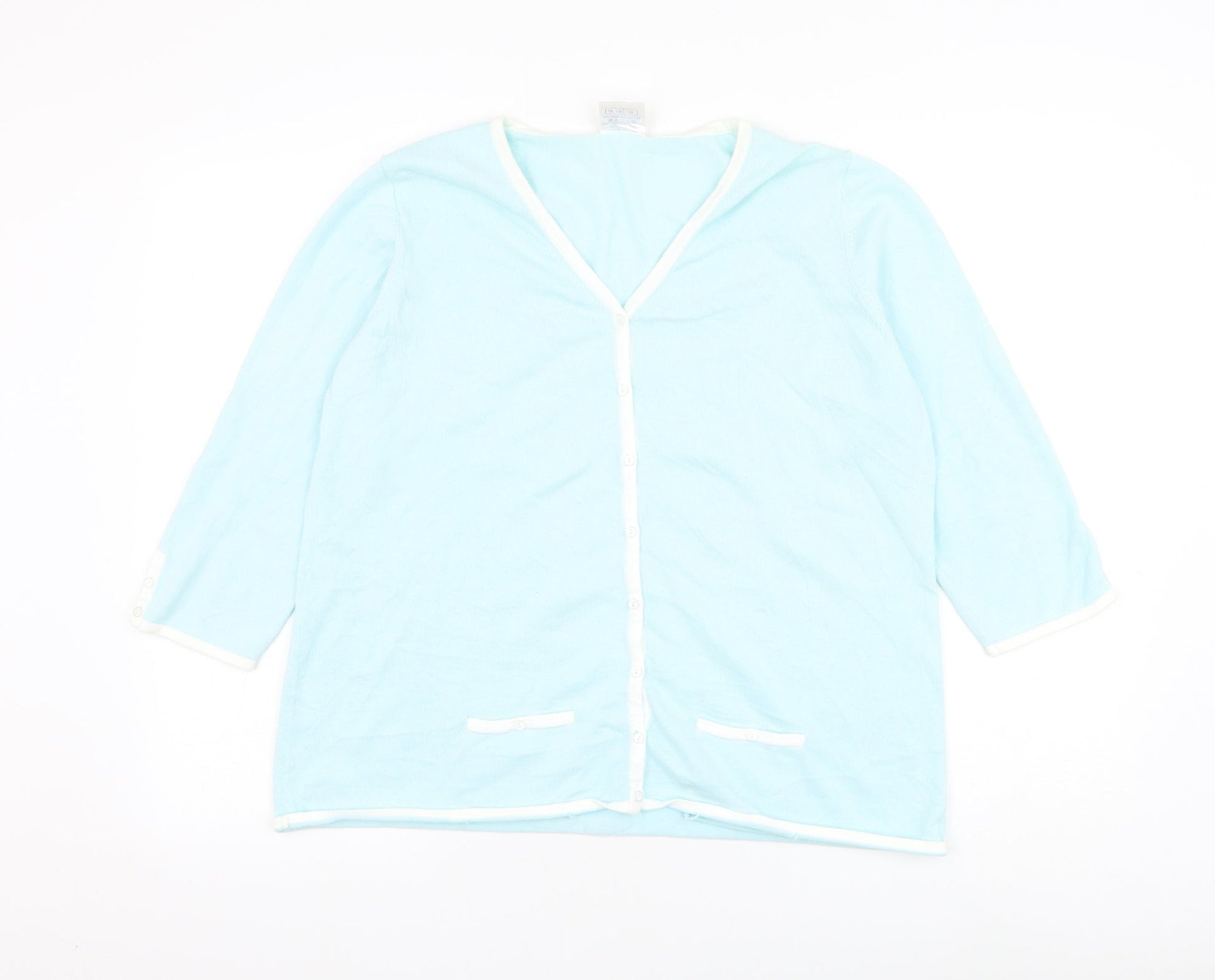 Agenda Womens Blue Round Neck Ramie Cardigan Jumper Size 18