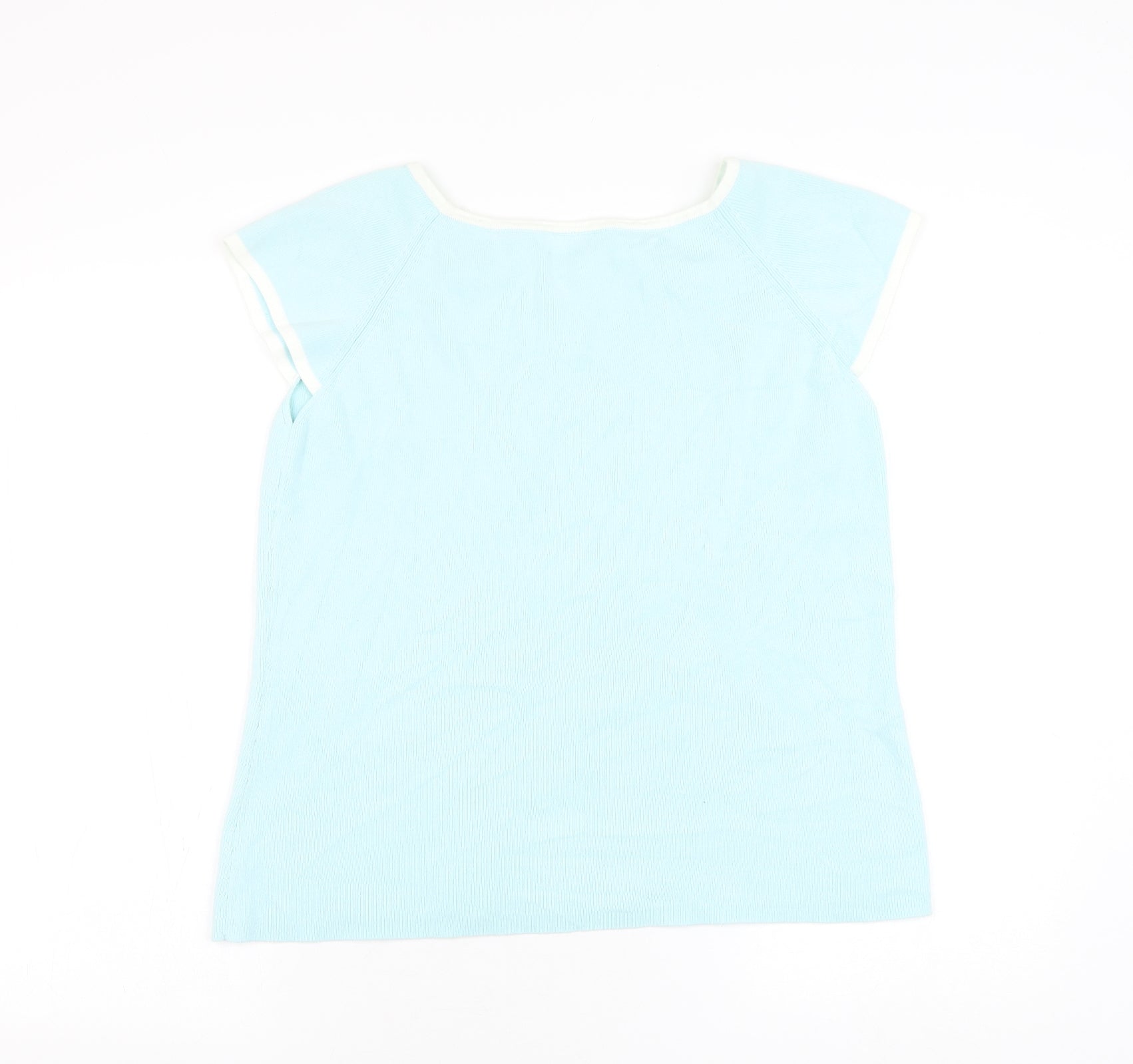 Agenda Womens Blue Round Neck Ramie Pullover Jumper Size 18