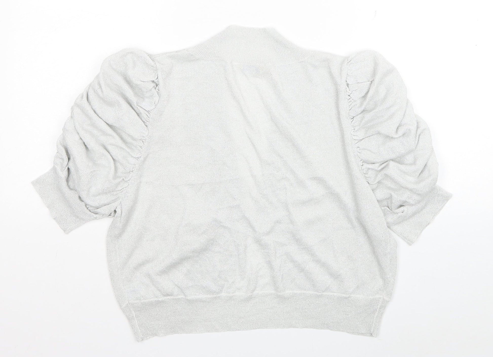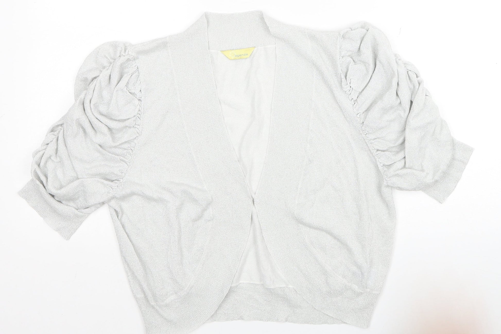 Agenda Womens Silver V-Neck Viscose Cardigan Jumper Size 18 - Ruched Sleeves