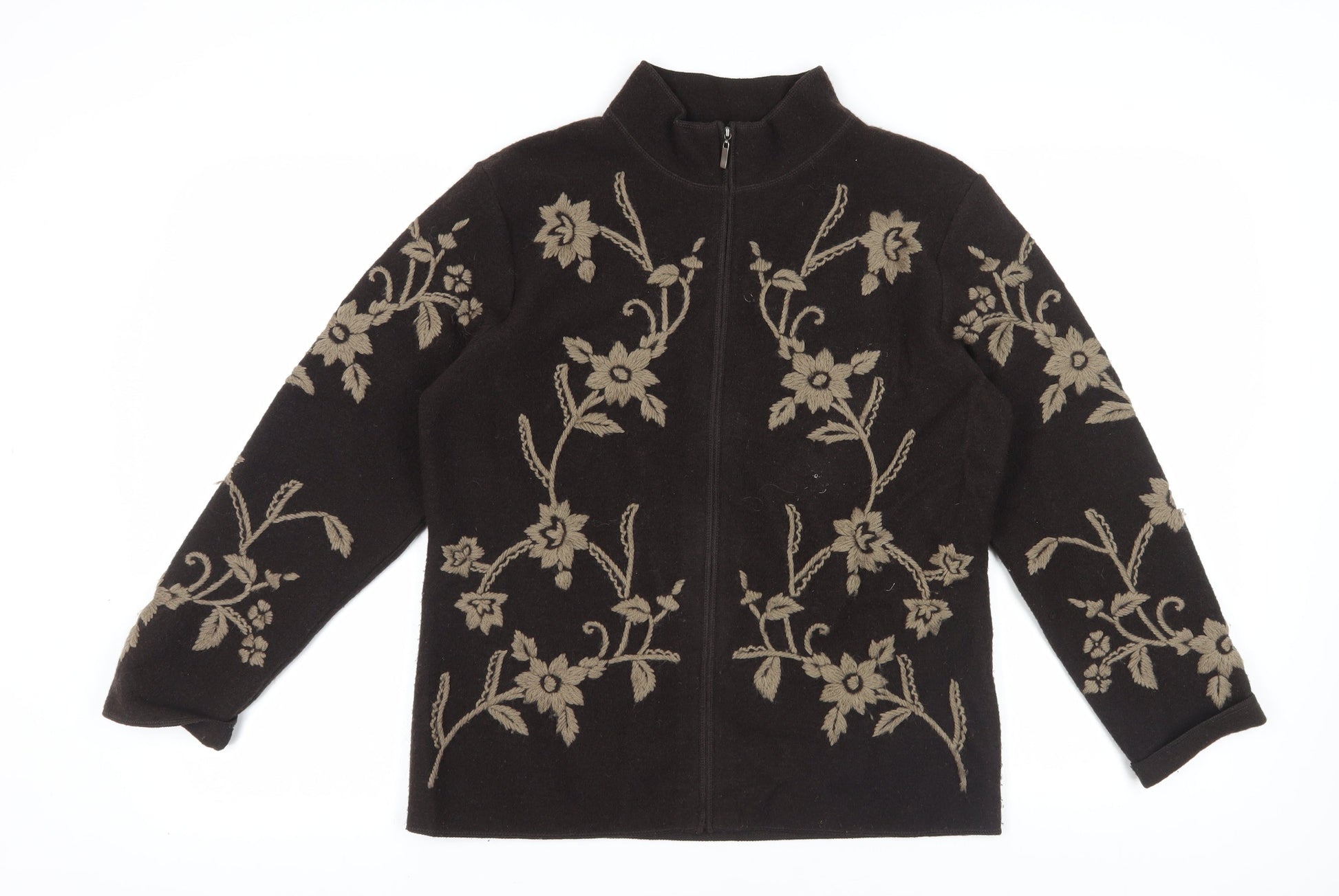 Alex & Co. Women’s Brown Floral Full Zip Wool Jumper