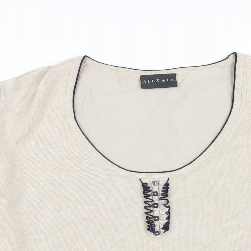 Alex & Co Womens Beige Scoop Neck Viscose Pullover Jumper Size 14