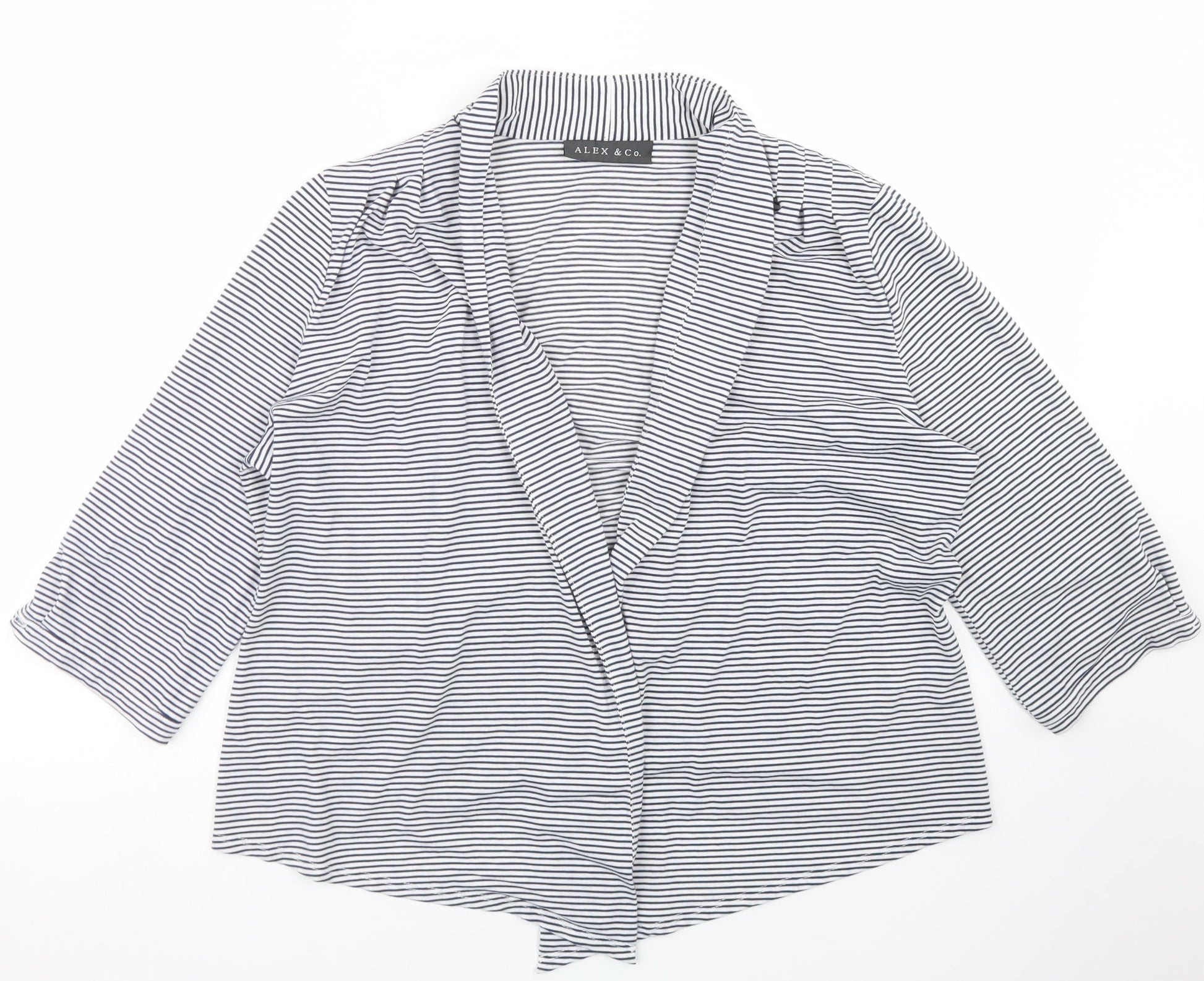 Alex & Co Womens Blue Collared Striped Polyester Cardigan Jumper Size 14