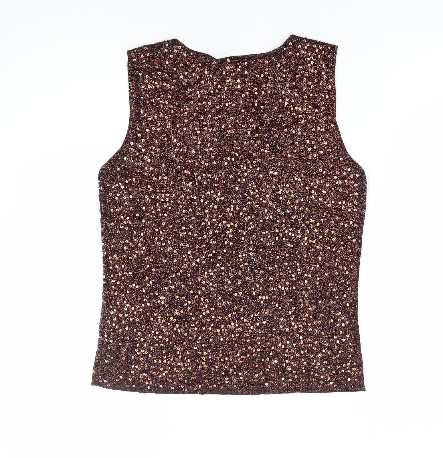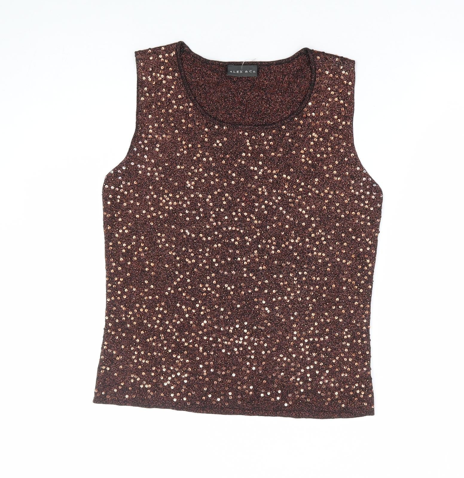 Alex & Co Womens Brown Round Neck Viscose Vest Jumper Size 8 - Bronze