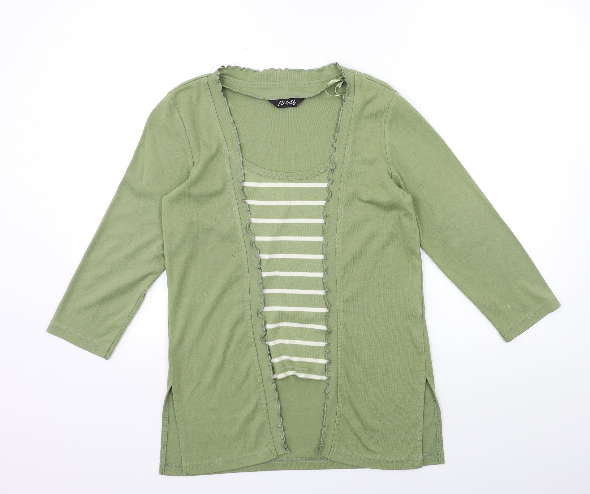 ALEXARA Womens Green Striped Basic T-Shirt Size 12