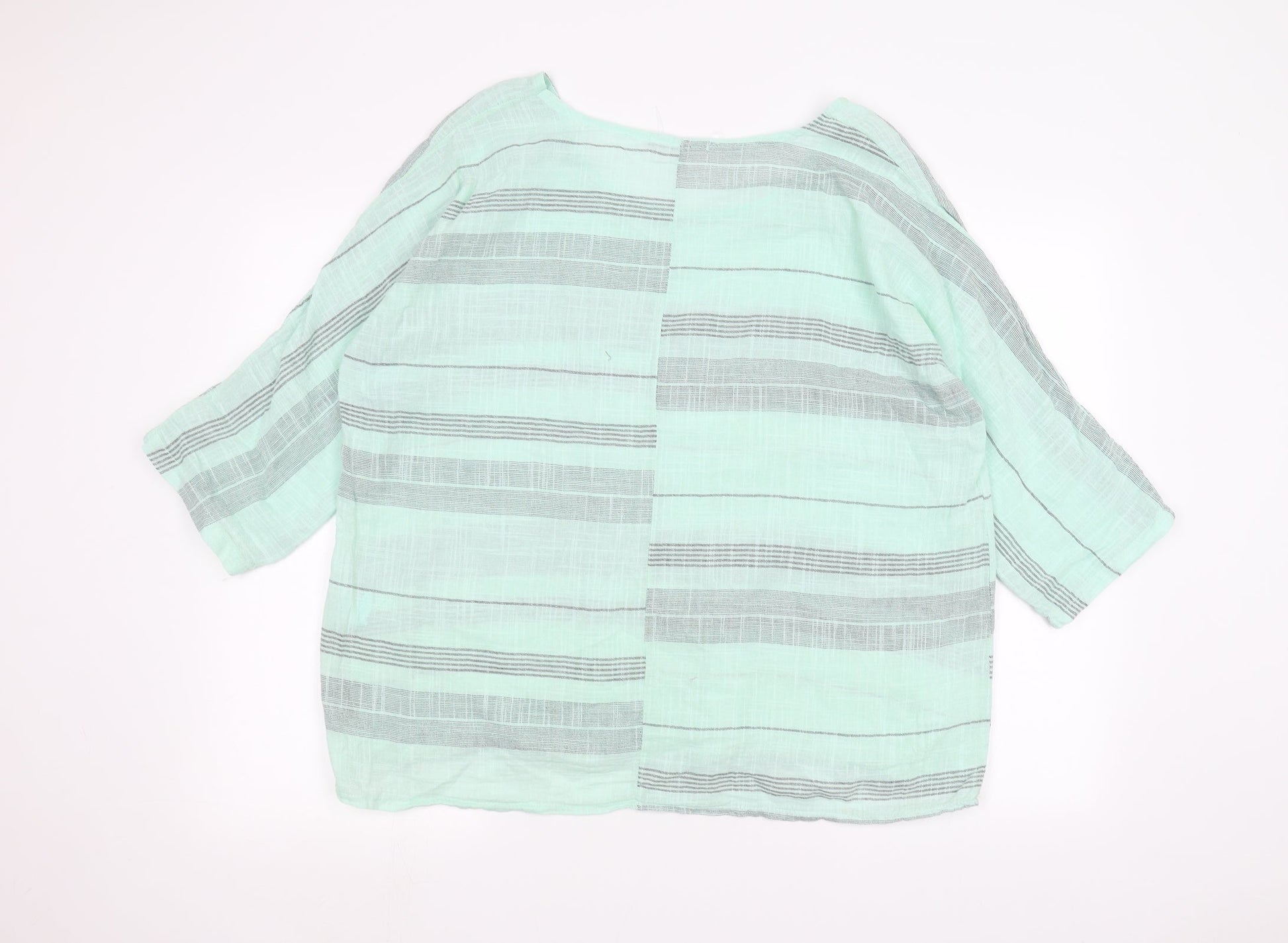 ALEXARA Womens Green Striped Basic T-Shirt Size M