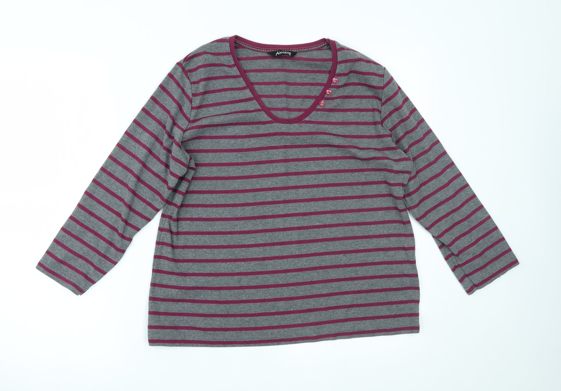 ALEXARA Womens Grey Striped Basic Blouse Size 16