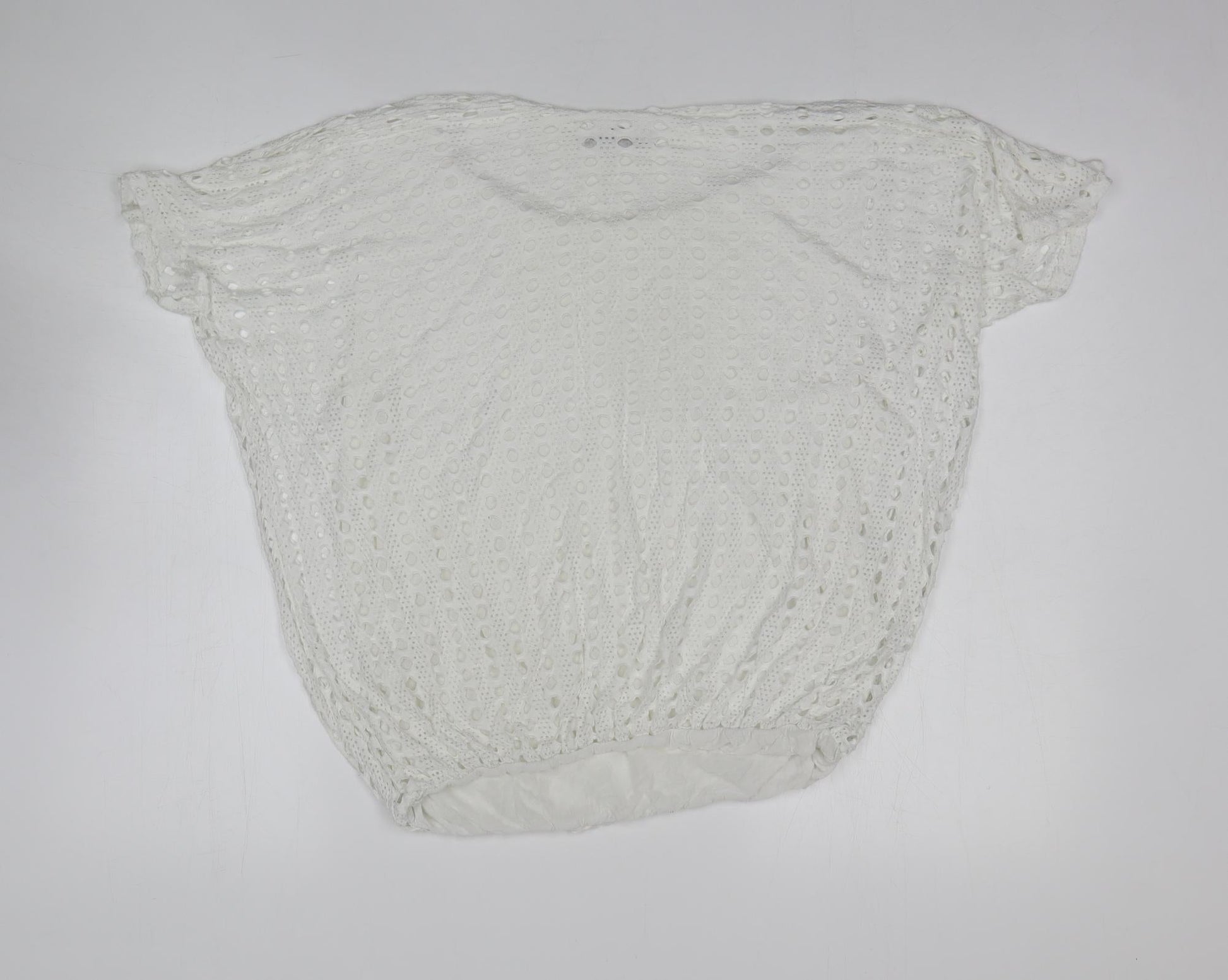 Alexara Womens White Viscose Basic T-Shirt Size L Round Neck