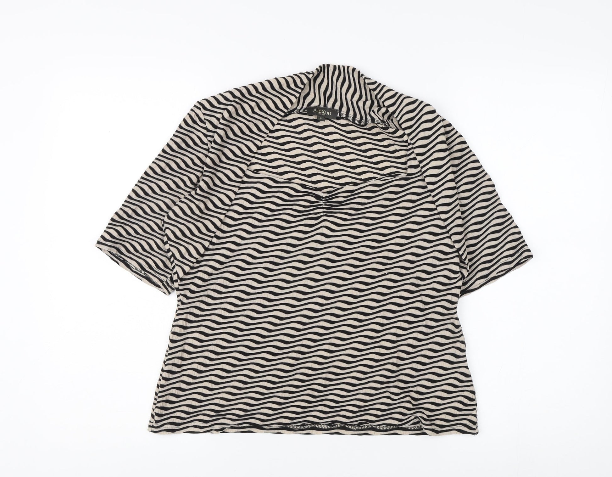 Alexon Women's Black Geometric 3/4 Sleeve Top L