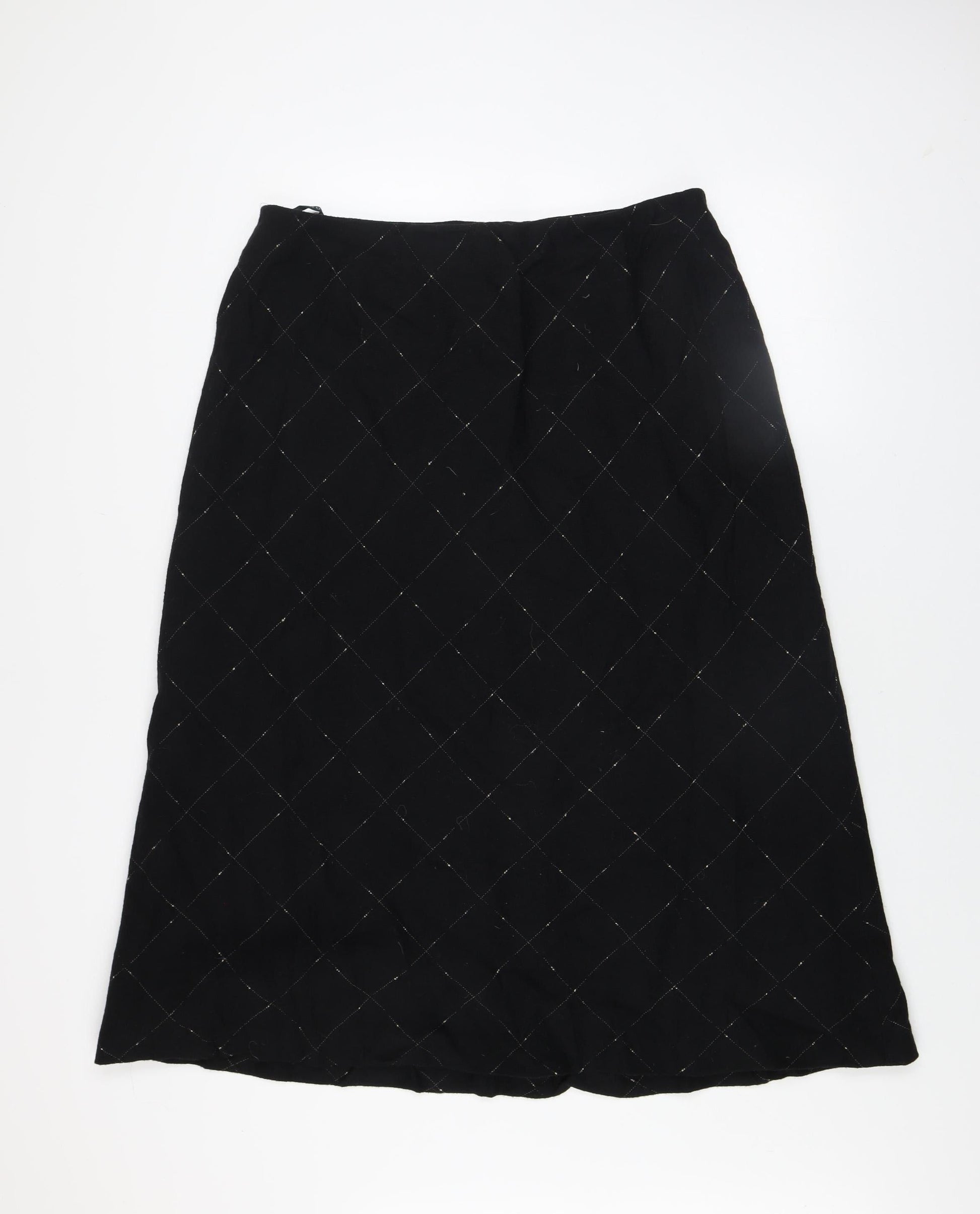 Alexon Women's Black Wool A-Line Quilted Midi Skirt Size 20