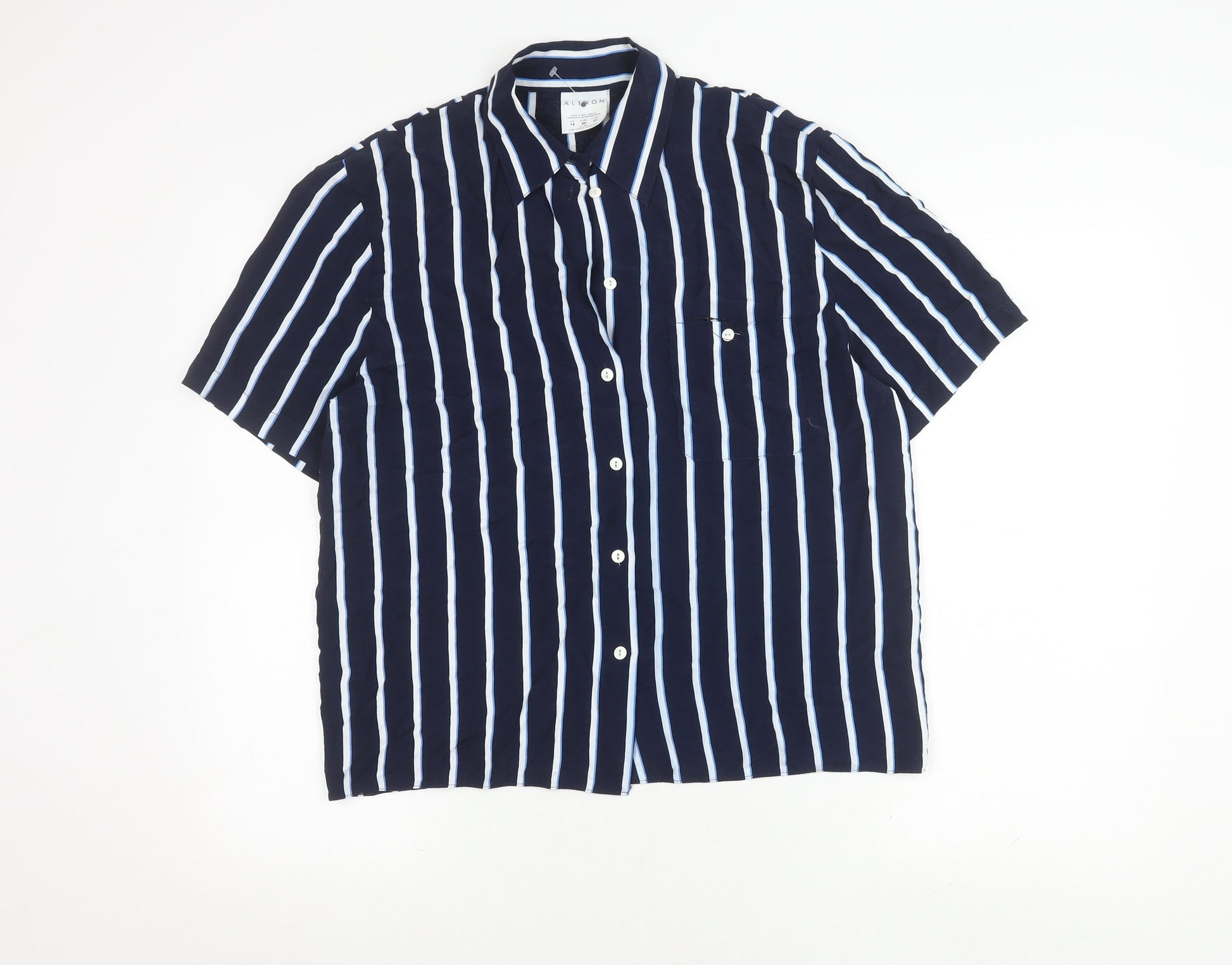 Alexon Women's Blue Striped Button-Up Shirt Size 14