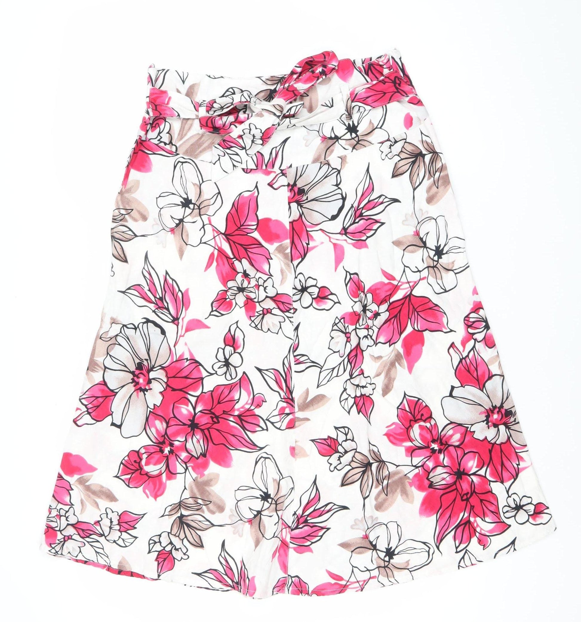 Alexon Womens Floral Skirt Size 16 Multicoloured Knee Length Cotton Linen