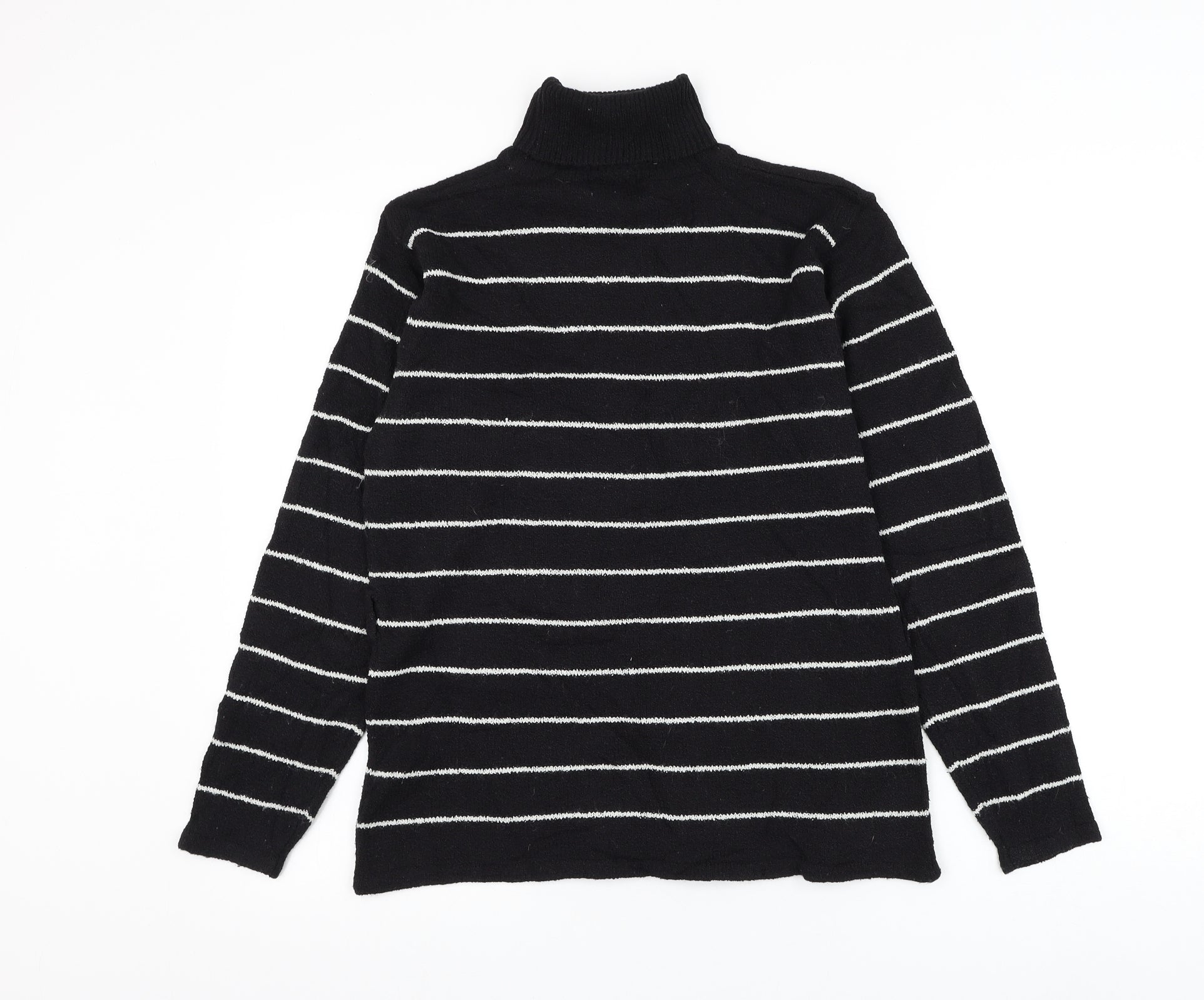 Alibi Womens Black Roll Neck Striped Acrylic Pullover Jumper Size L