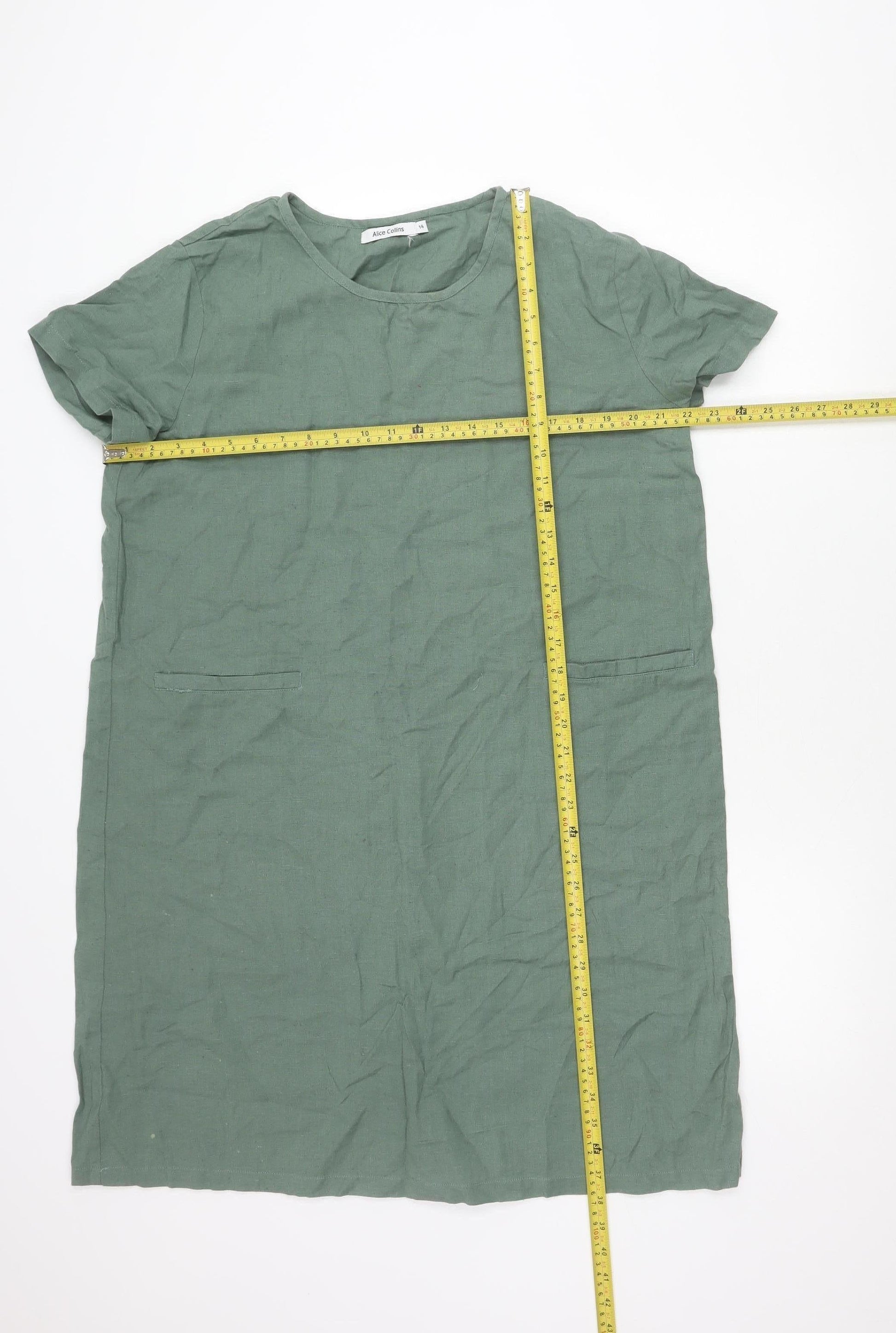 Alice Collins Womens Green Shift Dress Size 14 Linen Cotton Casual