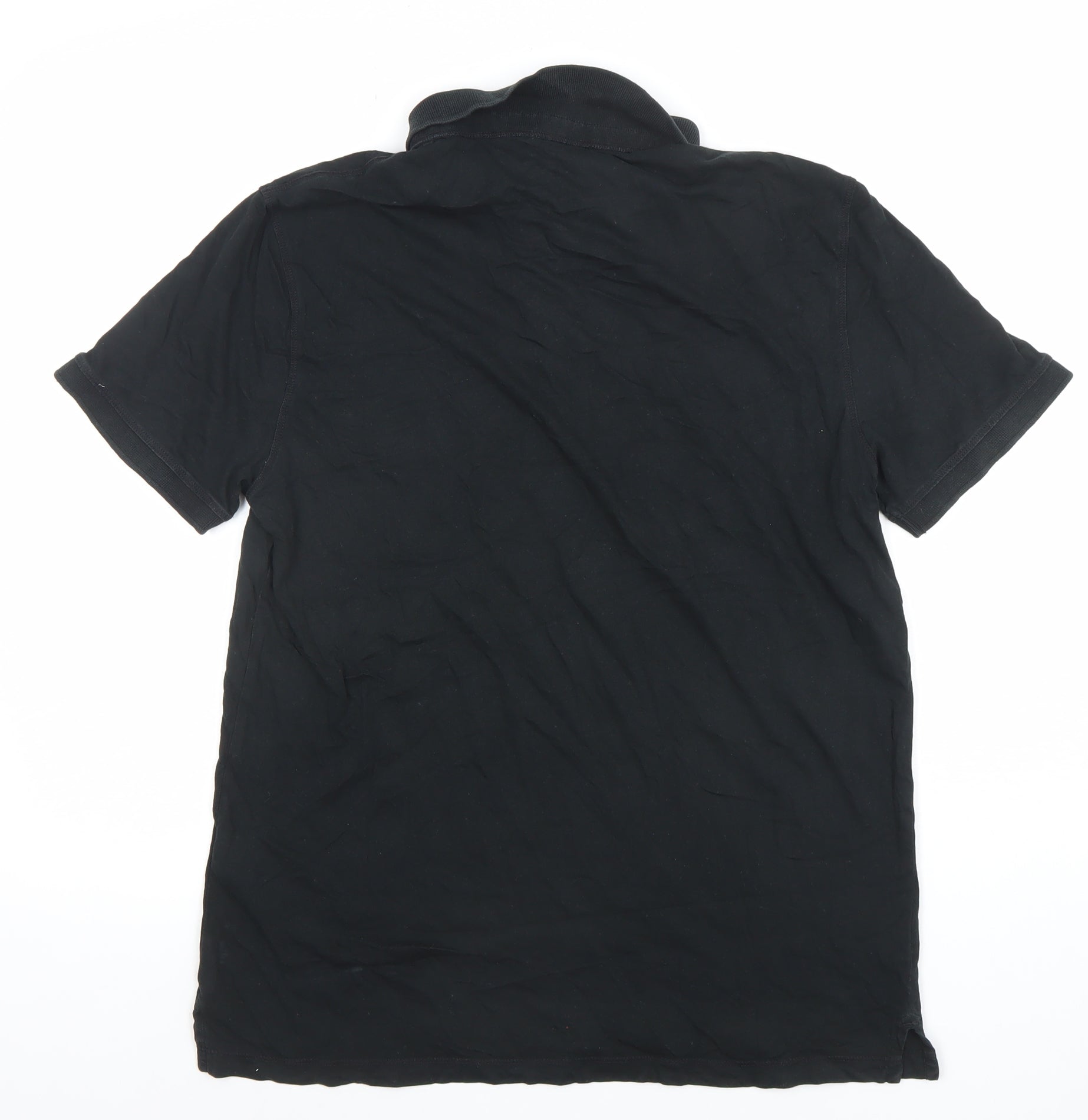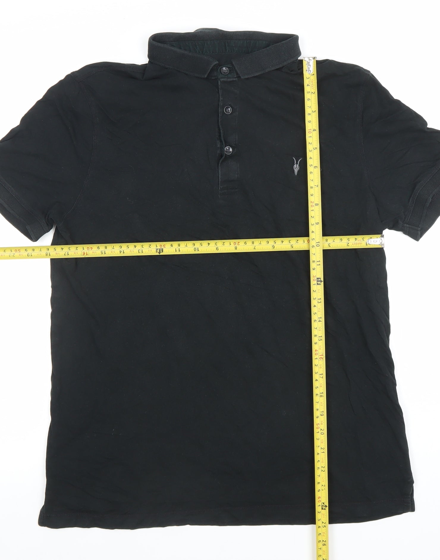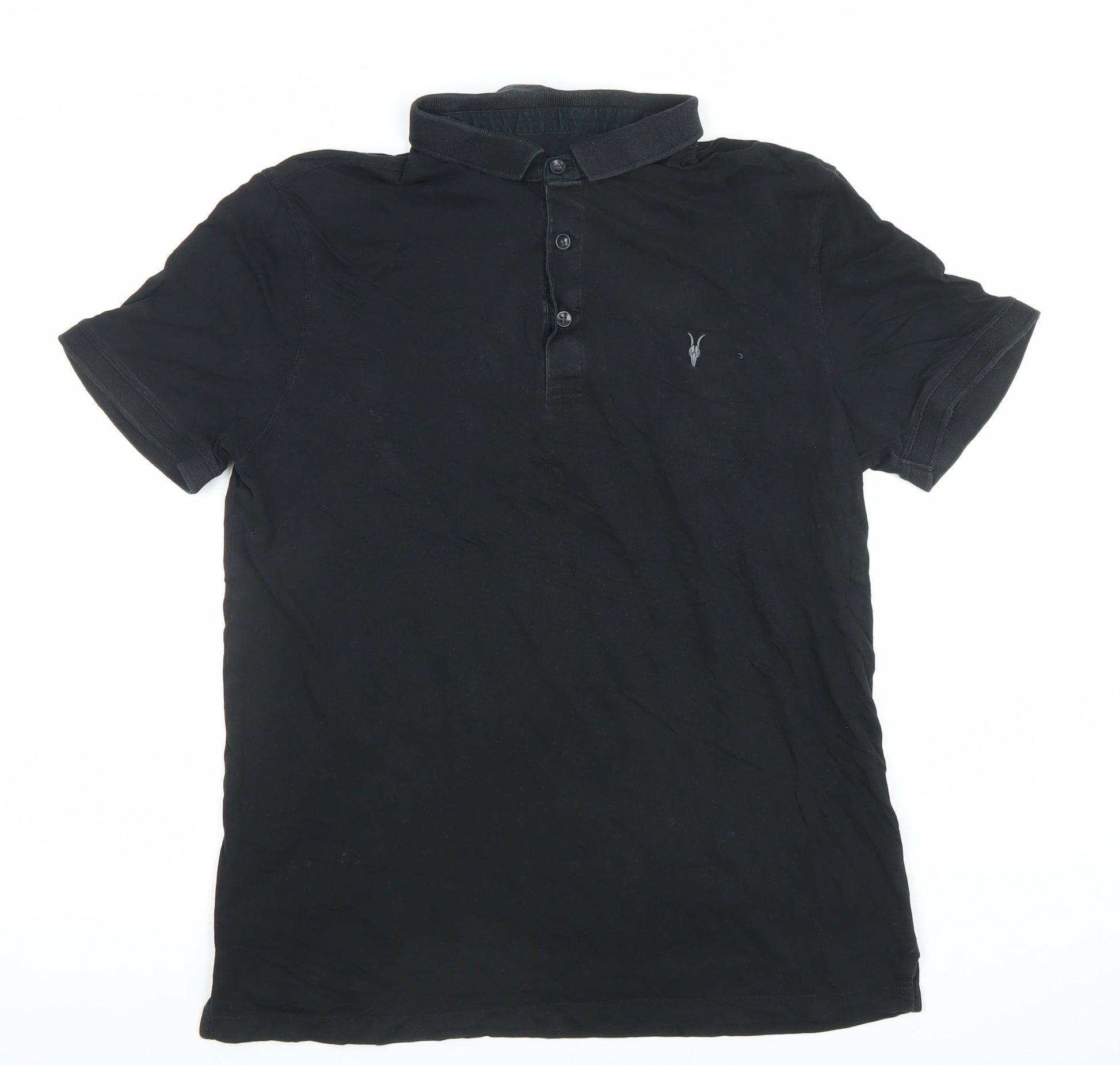 AllSaints Men’s Black Slim Fit Cotton Polo Shirt Size L