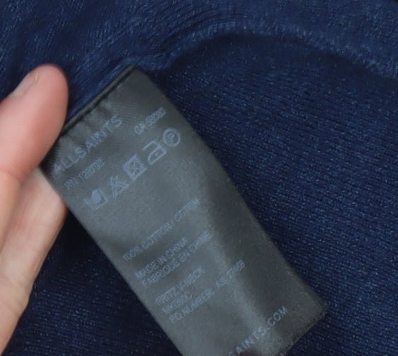 AllSaints Men’s Blue Cotton V-Neck Pullover Jumper Size L