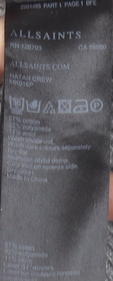 AllSaints Men’s Grey Waffle-Knit Pullover M