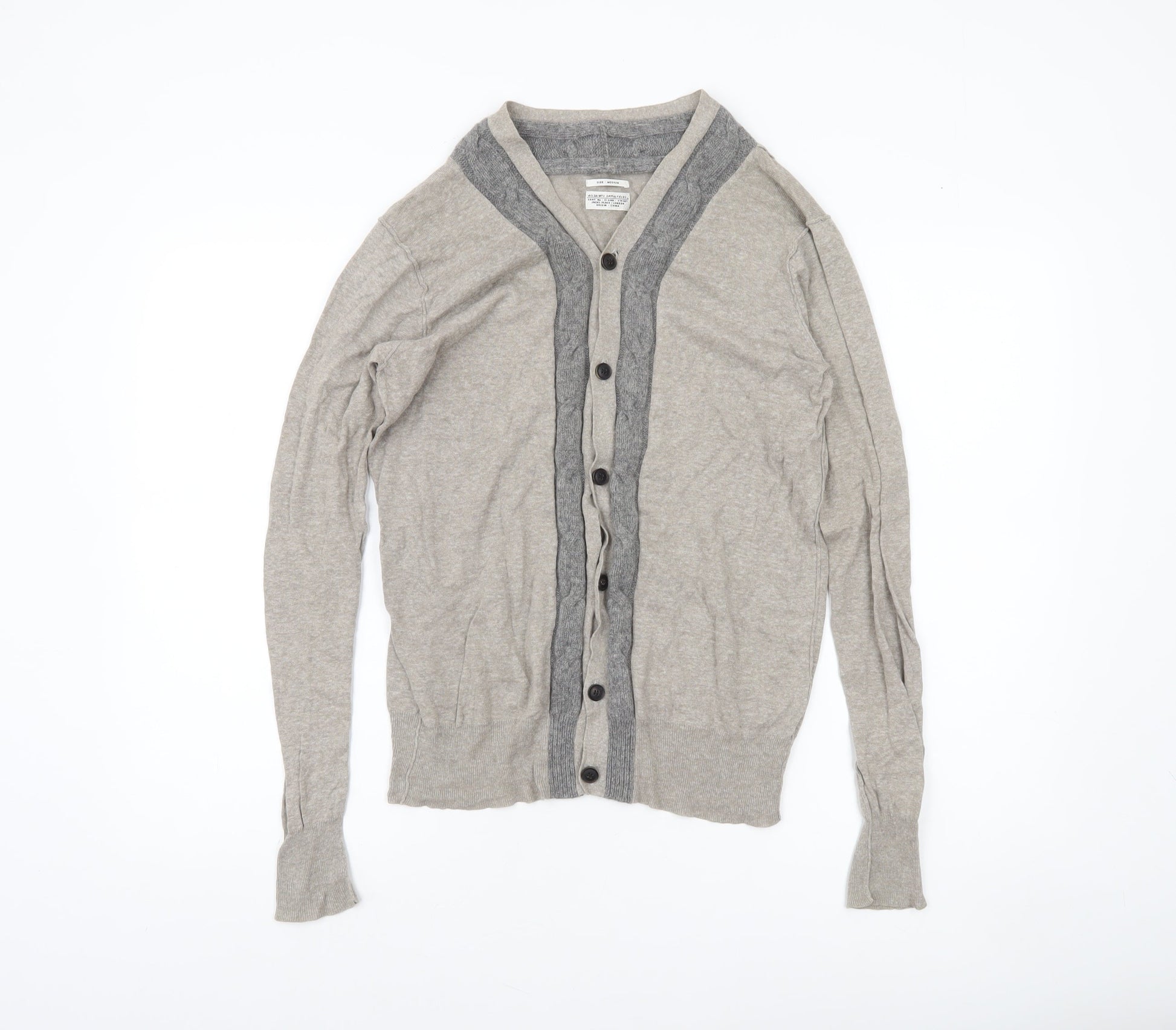 AllSaints Men's Beige Linen Cotton Wool Button Cardigan Medium