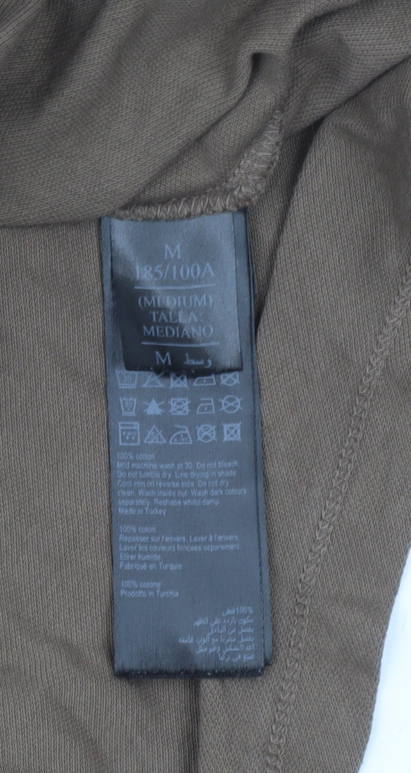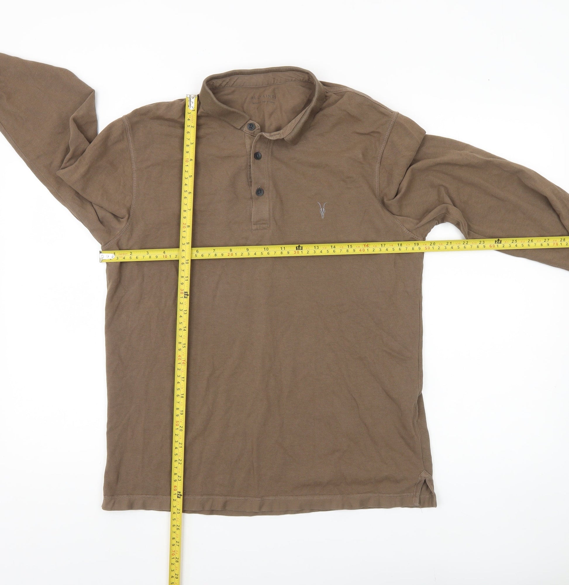 AllSaints Mens Brown Long Sleeve Polo Shirt Medium 100% Cotton