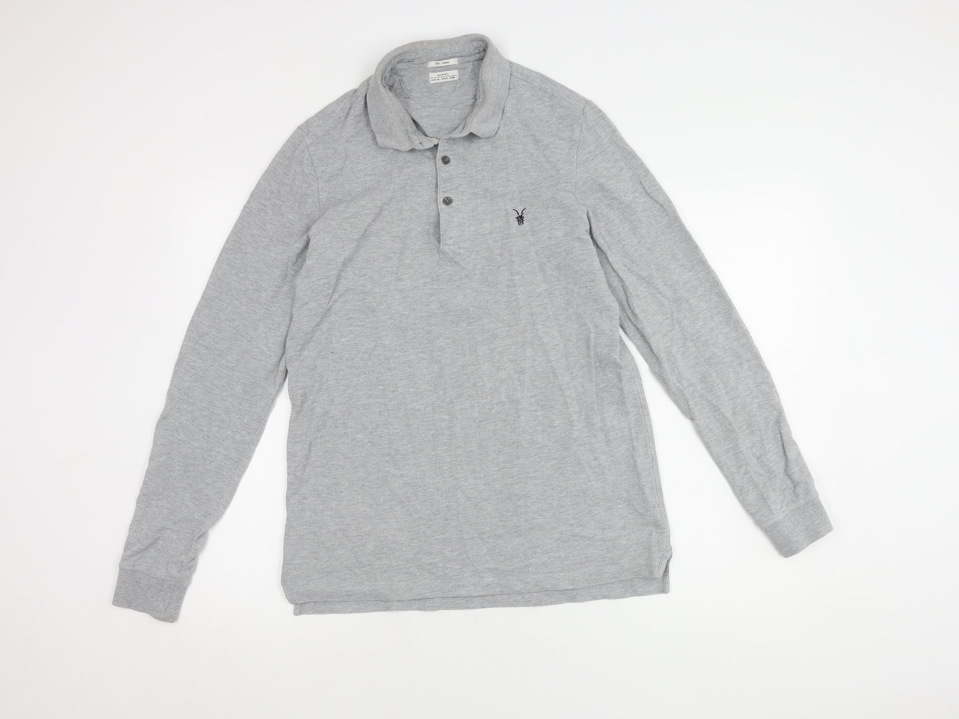 AllSaints Men's Grey Long Sleeve Polo Shirt Size S