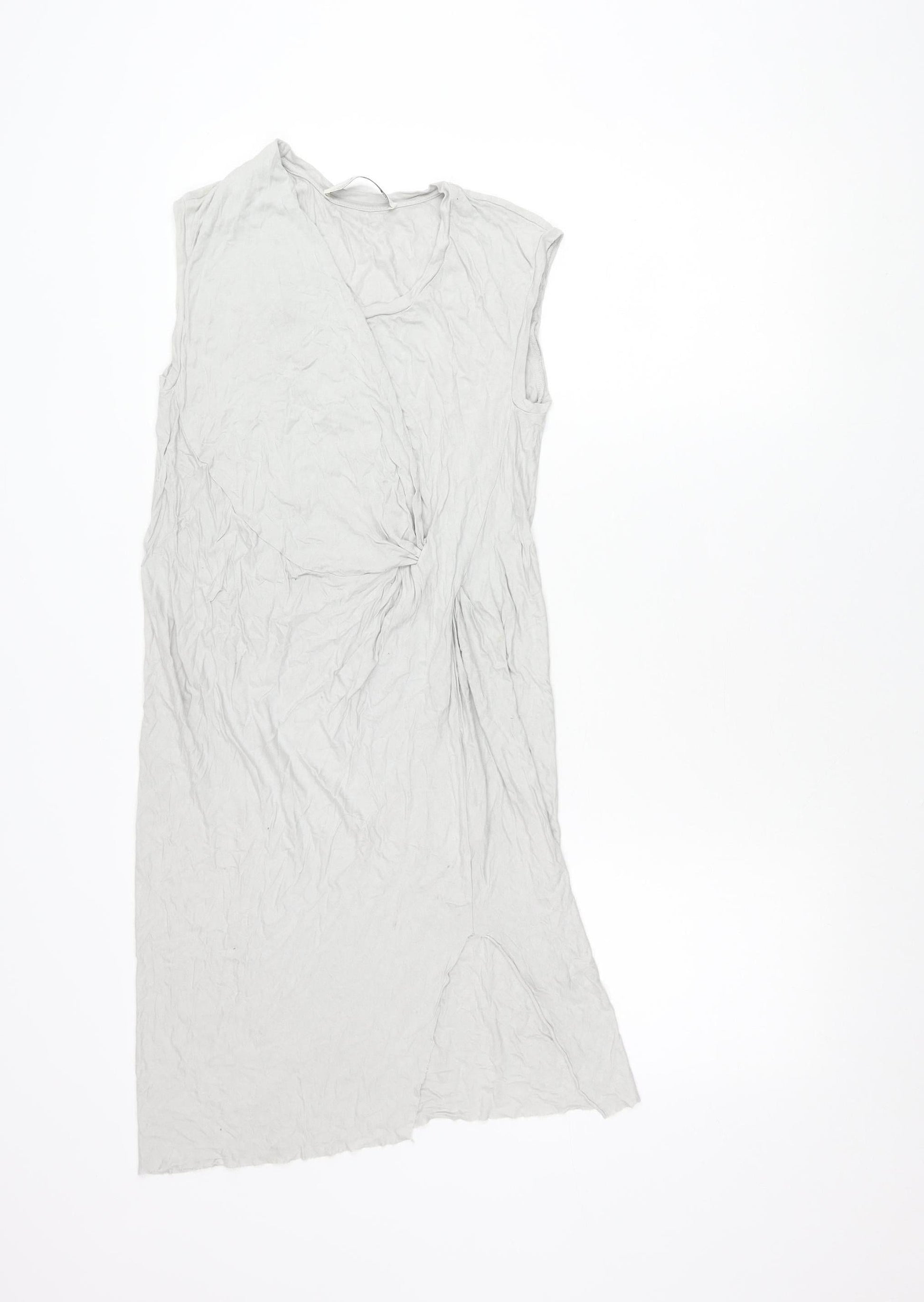 AllSaints Womens Grey Asymmetric Draped Midi Dress Size S