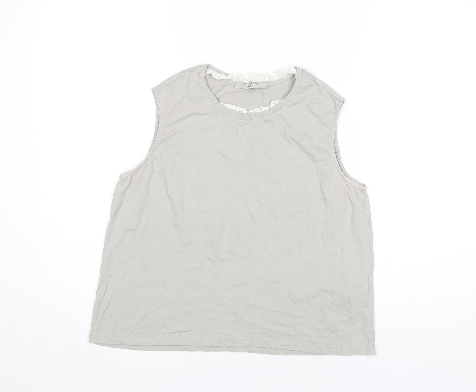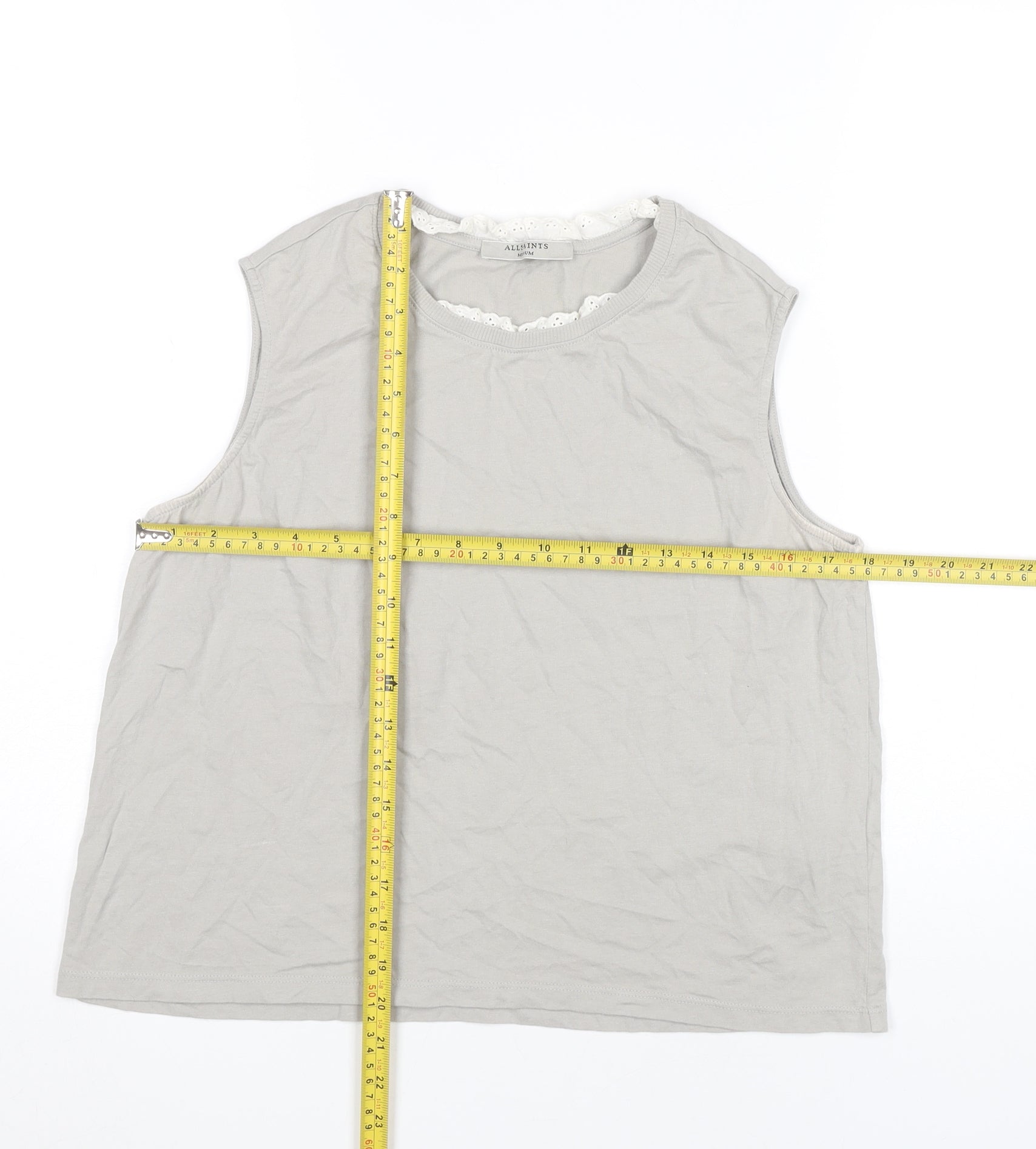 AllSaints Womens Grey Cotton Tank Top Size M Crew Neck Sleeveless