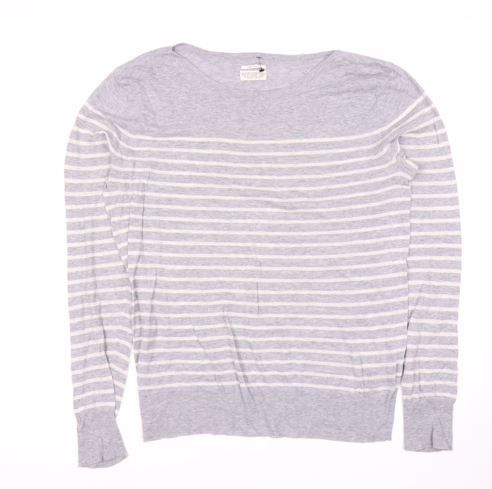 AllSaints Women's Grey Striped T-Shirt, Size S