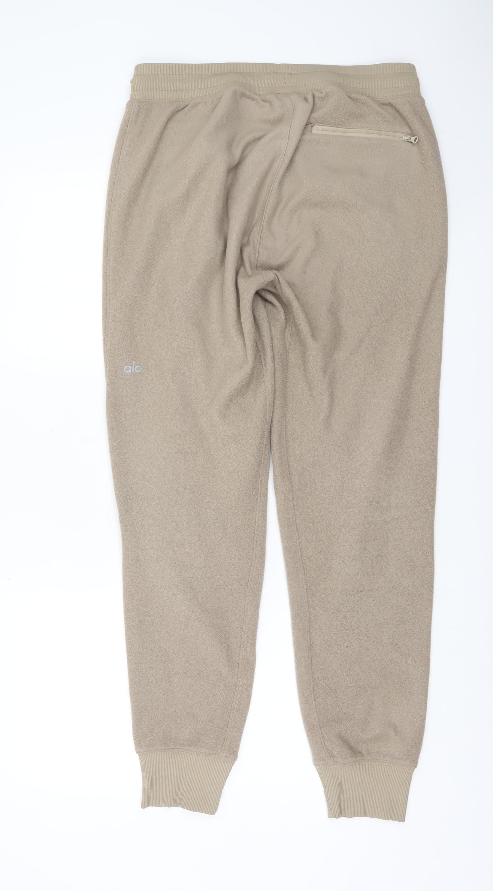 Alo Yoga Men's Beige Fleece Jogger Trousers M Regular Fit Elastic Waist