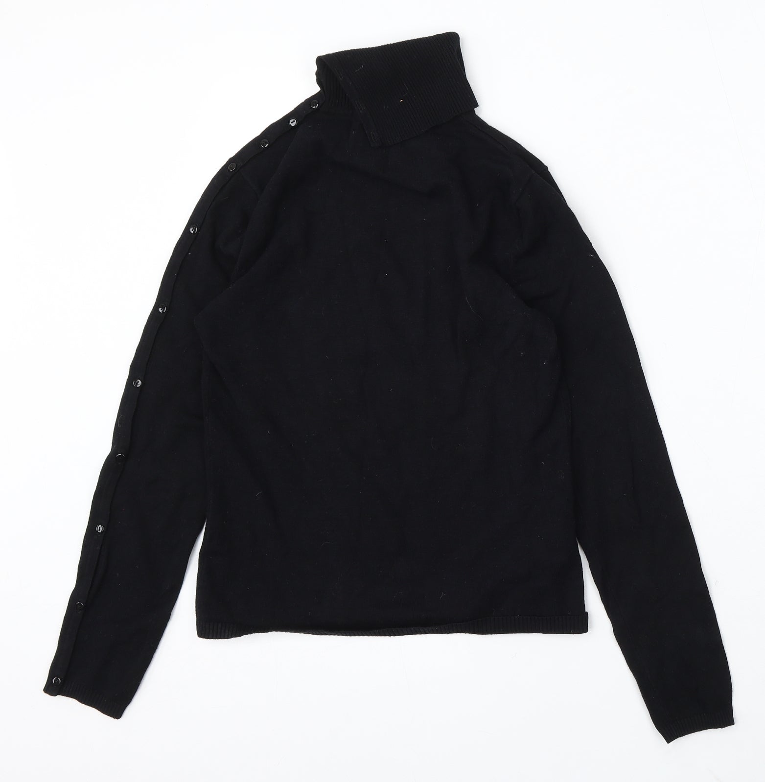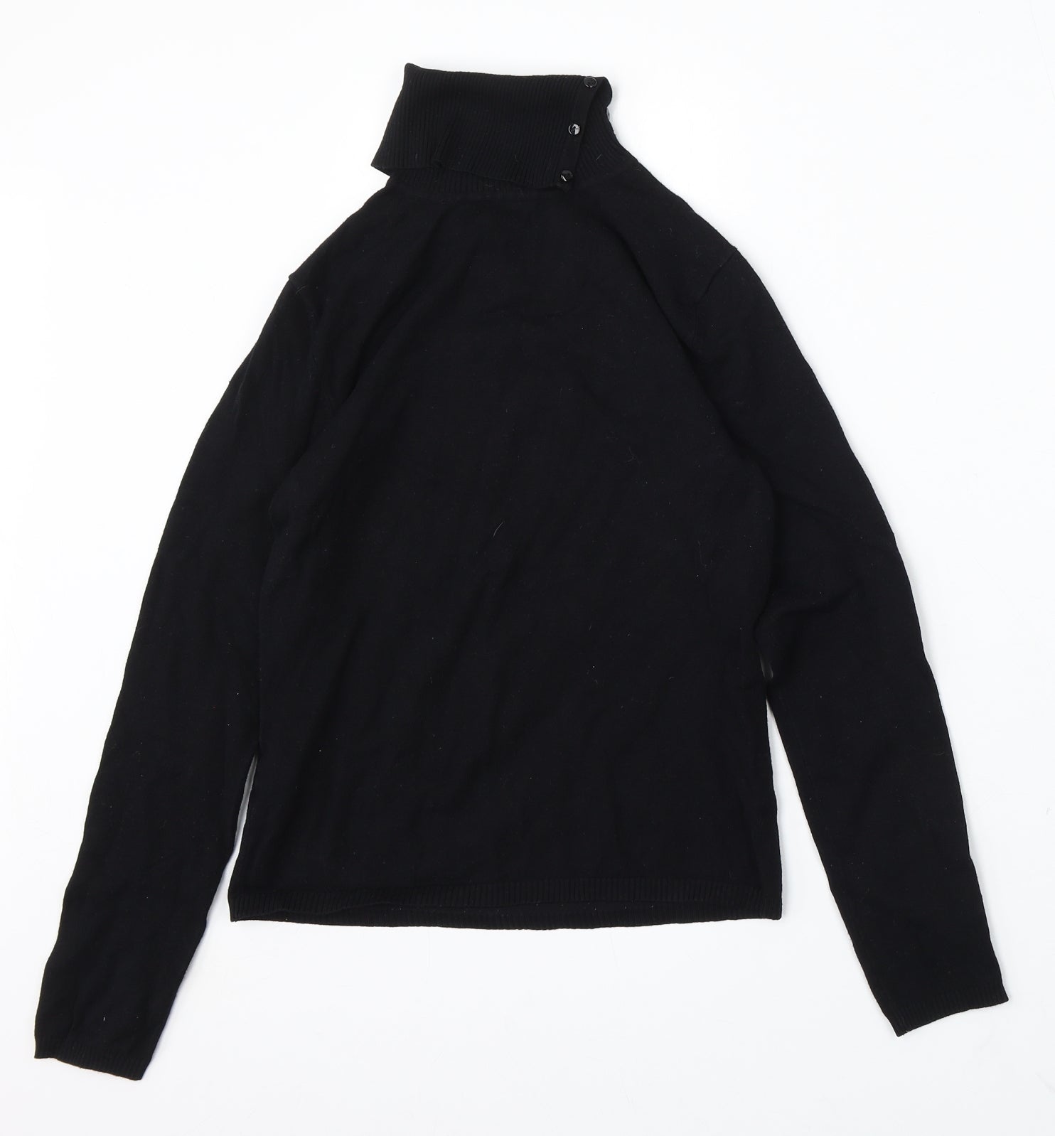 AMARANTO Womens Black Roll Neck Polyester Pullover Jumper Size S
