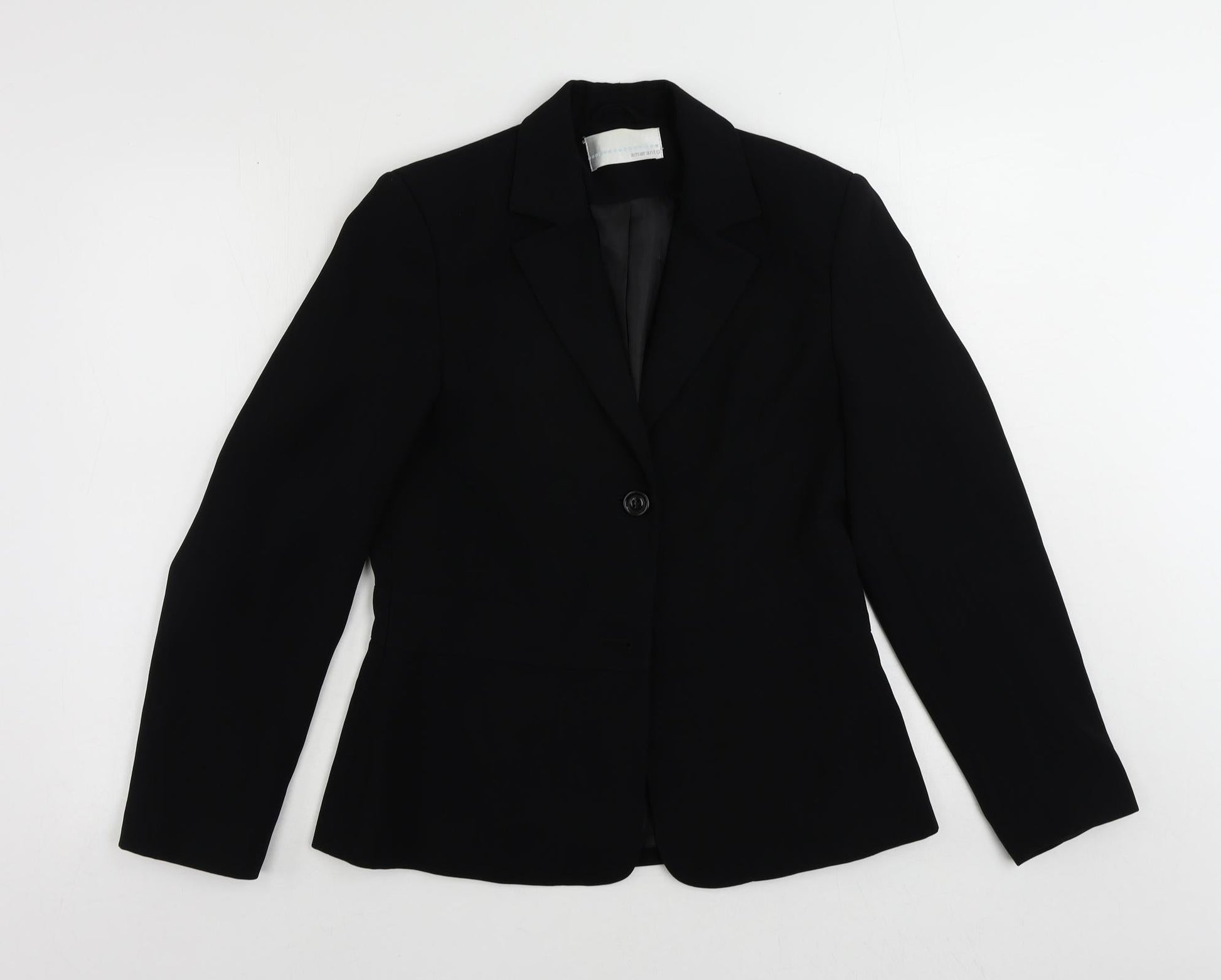 AMARANTO Womens Black Striped Jacket Blazer Size 12 Button