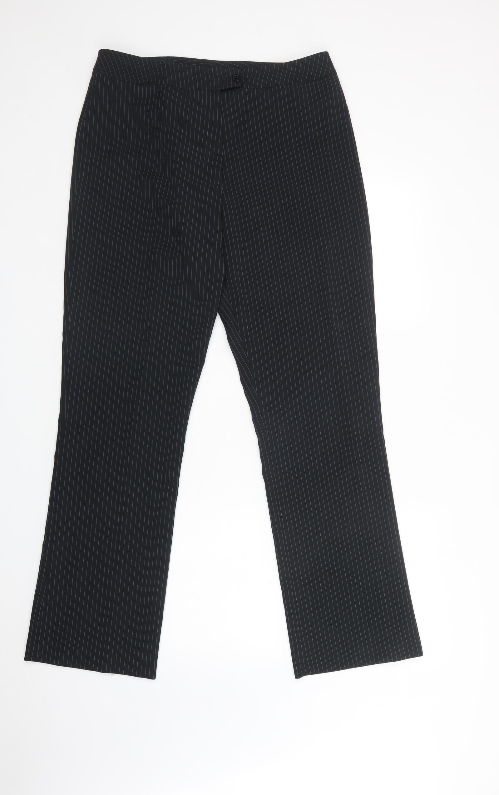 AMARANTO Womens Black Striped Polyester Dress Pants Trousers Size 16 L31 in Regular Button
