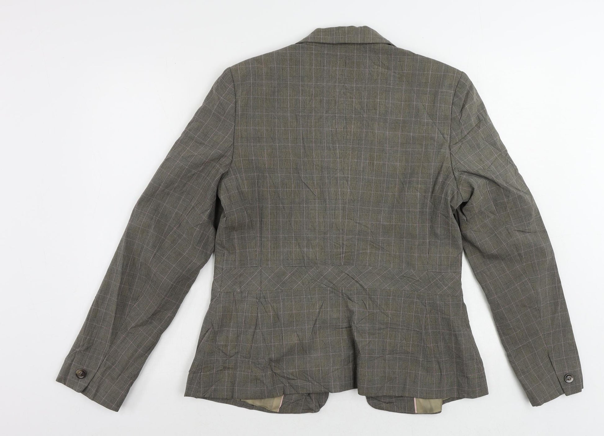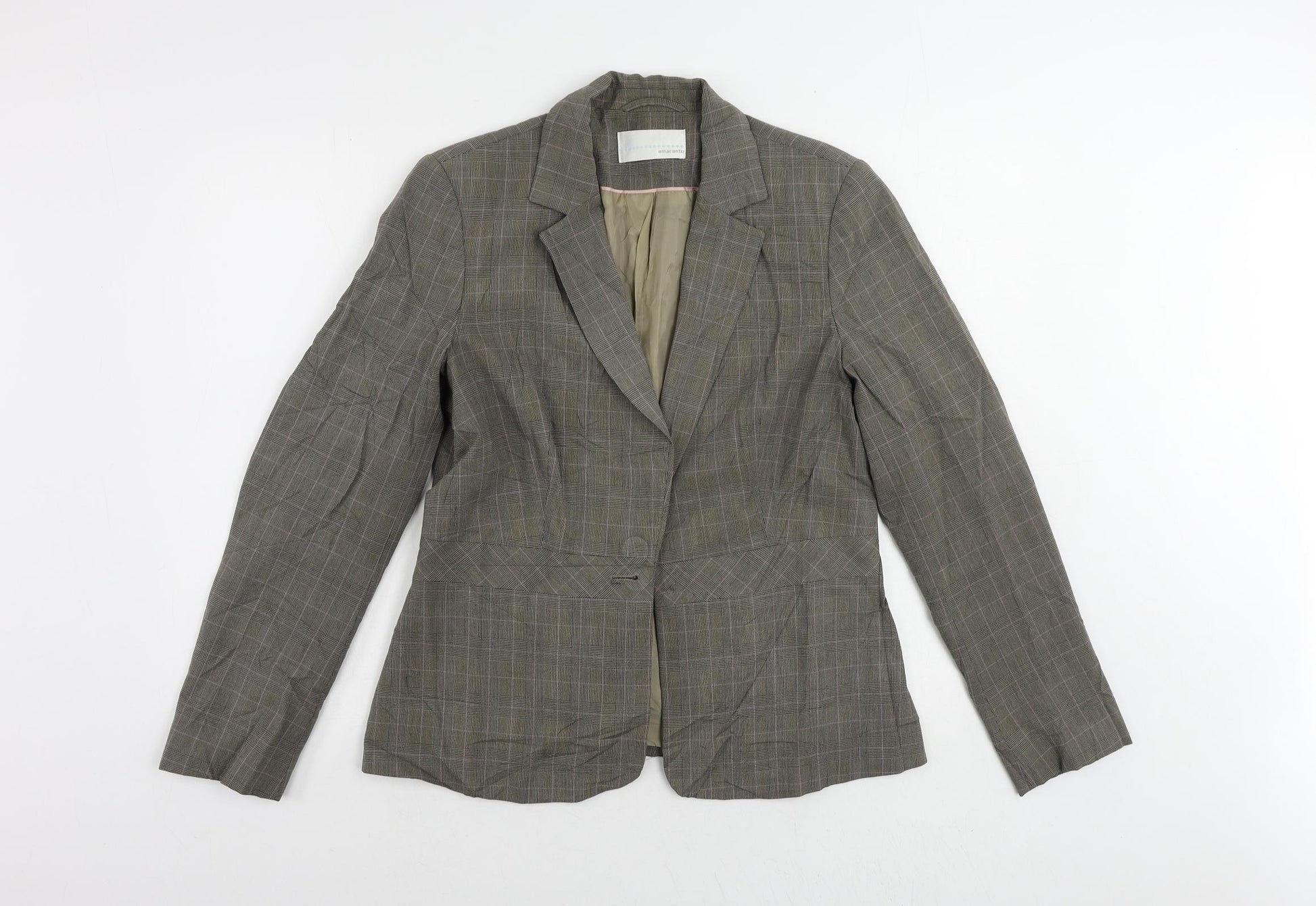 AMARANTO Womens Brown Plaid Jacket Blazer Size 14 Button