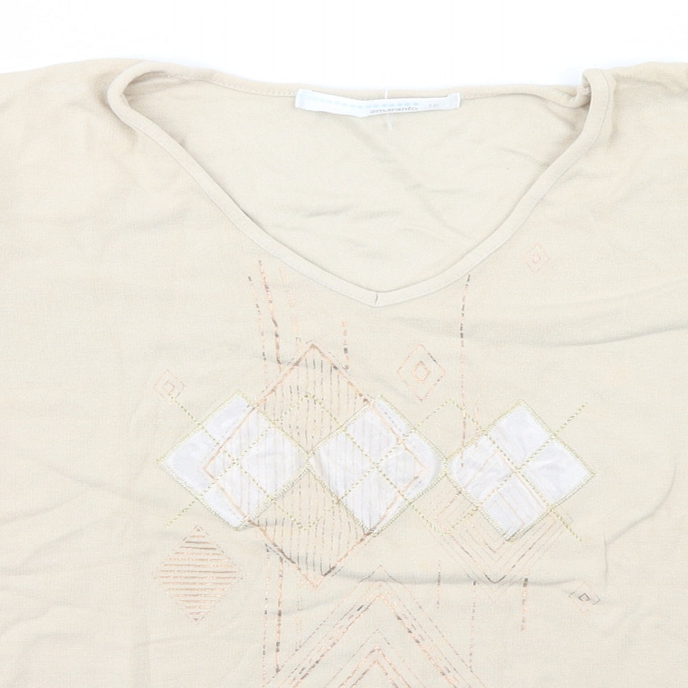 AMARANTO Womens Green Viscose Basic T-Shirt Size 16 V-Neck