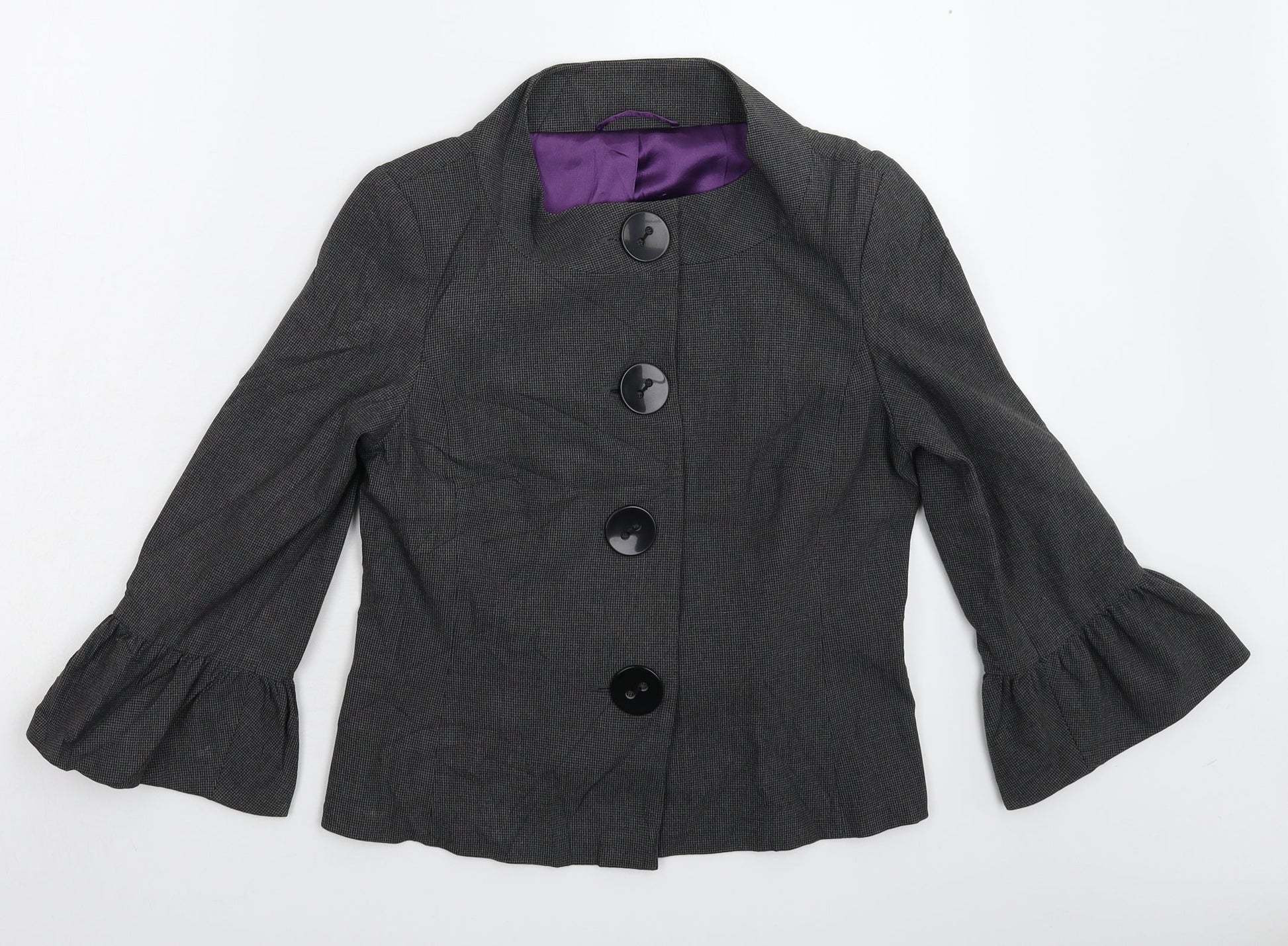 AMARANTO Womens Grey Houndstooth Jacket Blazer Size 12