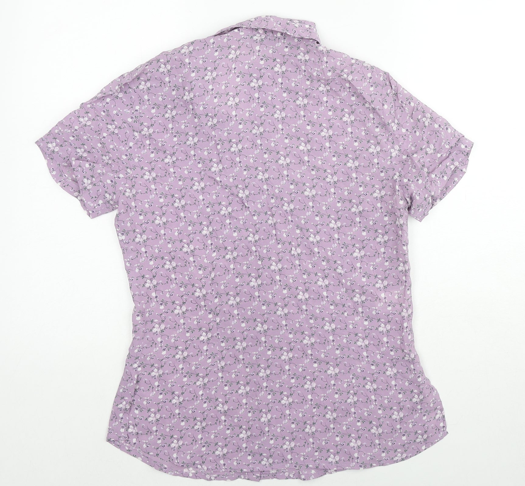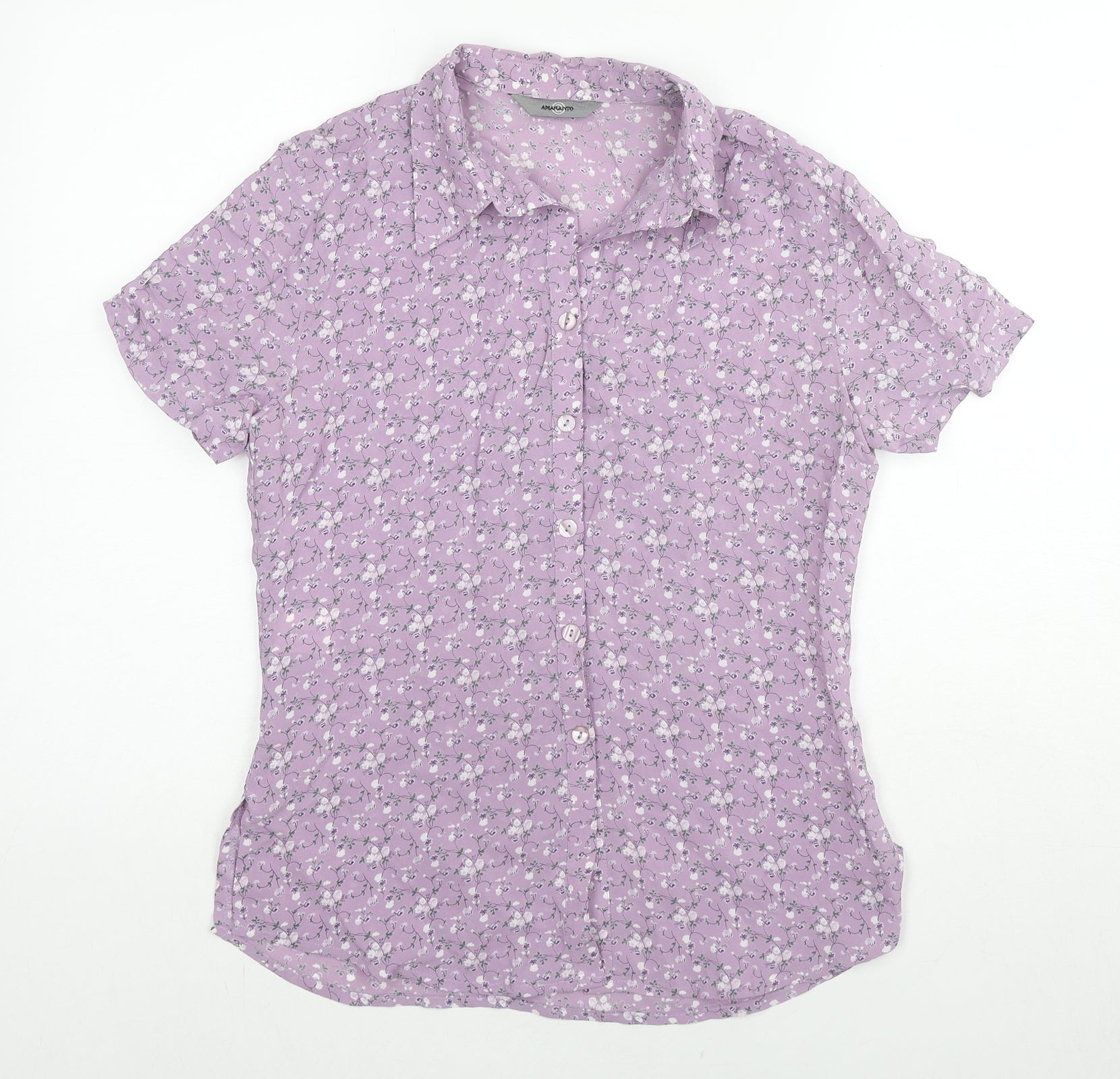 AMARANTO Womens Purple Floral Viscose Basic Button-Up Size 10 Collared