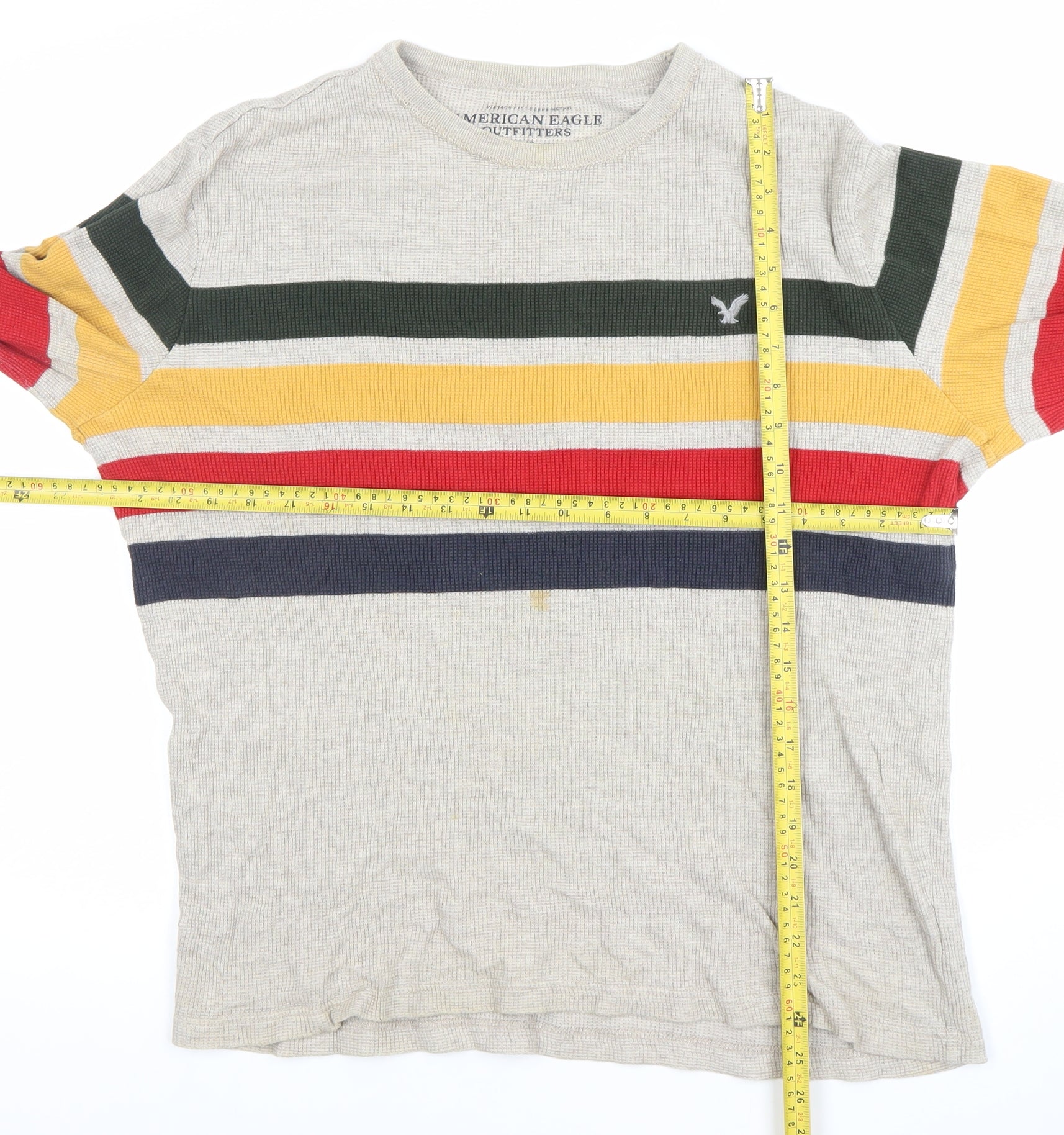 American Eagle Men’s Beige Striped Waffle Knit Cotton Jumper L