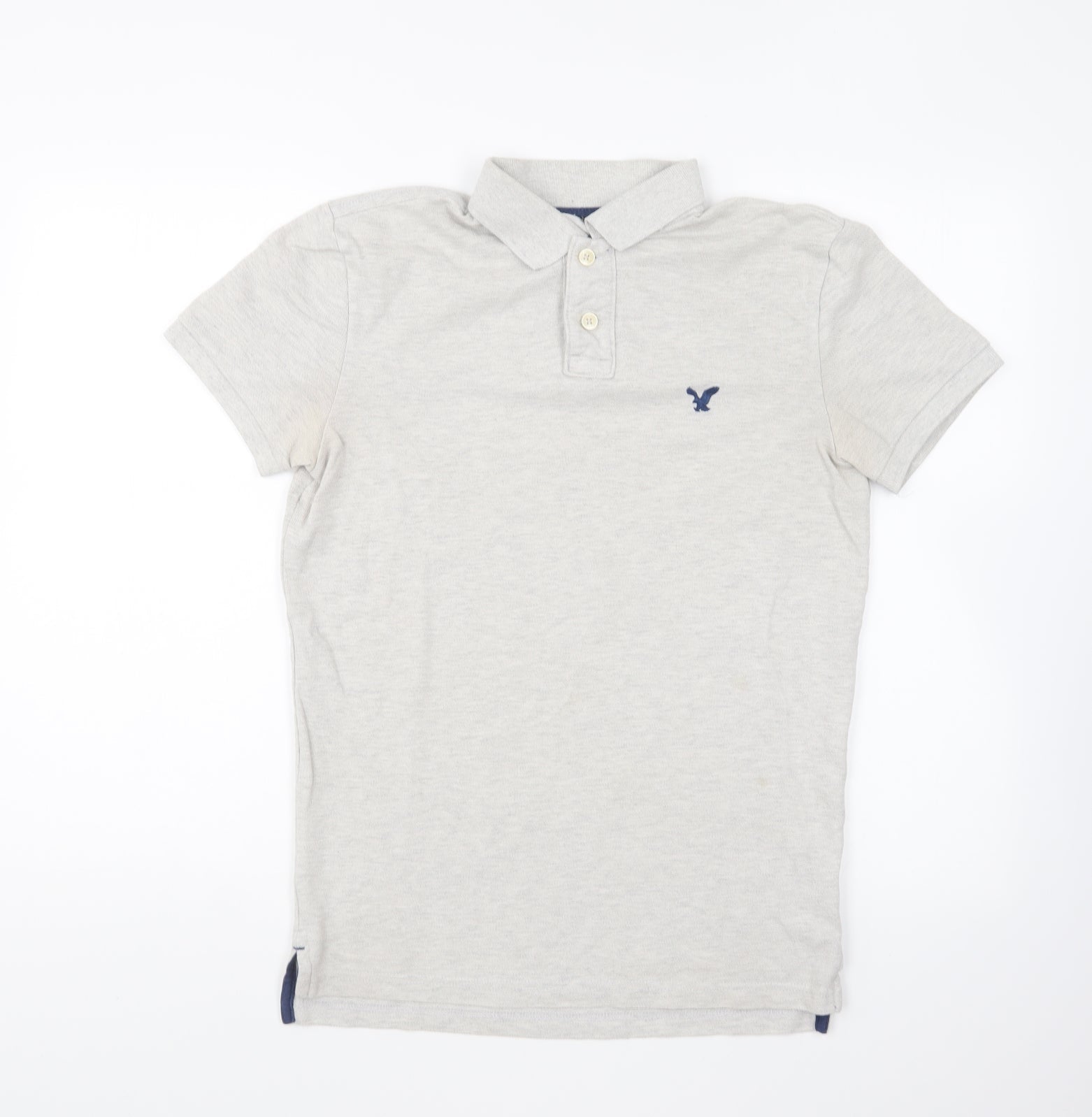 American Eagle Mens Grey Cotton Polo Size XS Collared Button