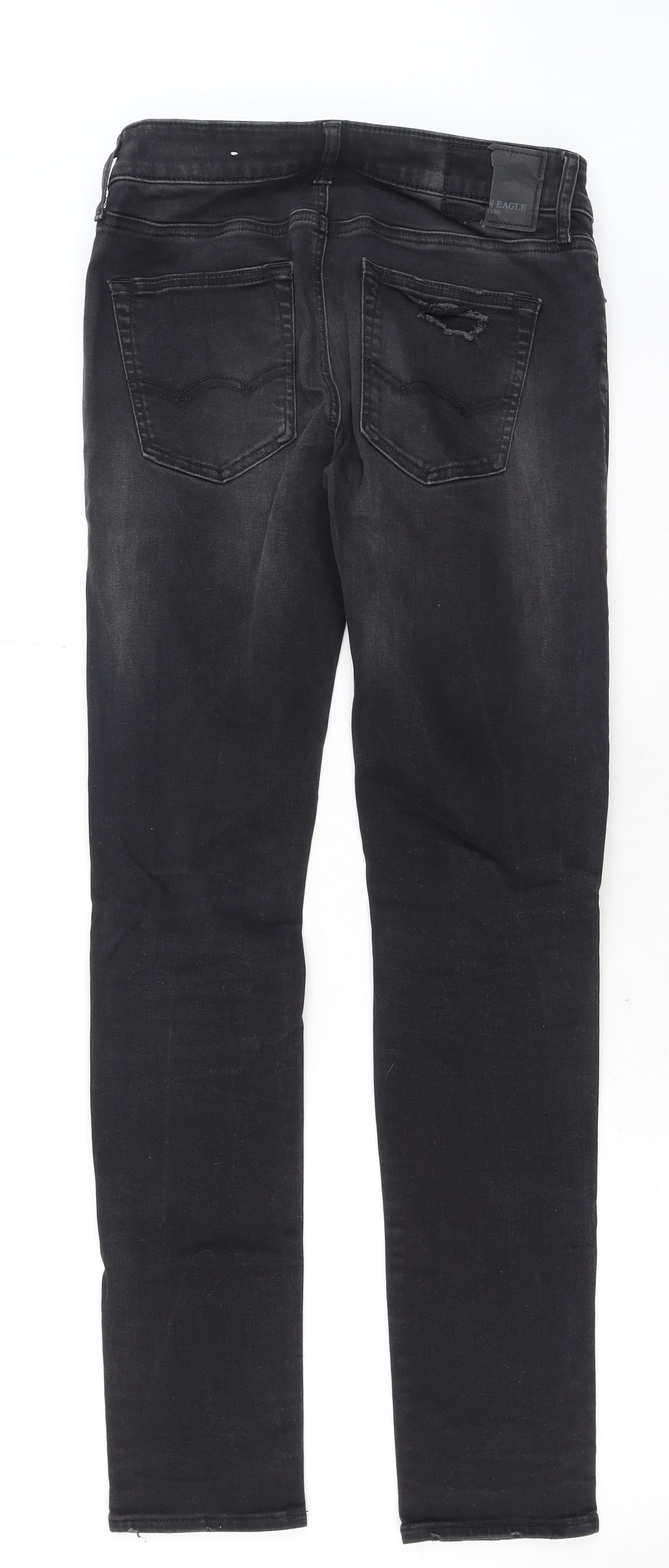 American Eagle Outfitters Mens Black Cotton Skinny Jeans Size 28 in Regular Button