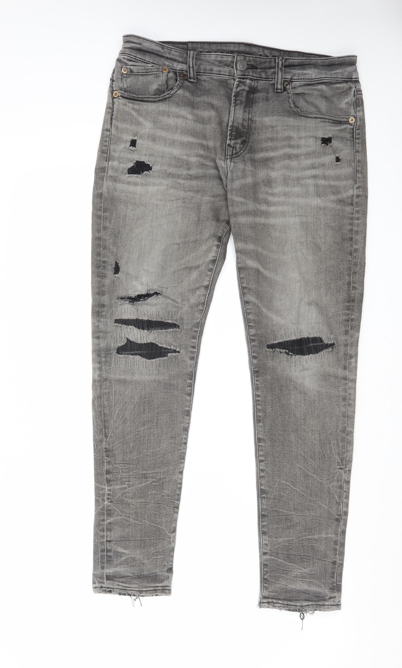 American Eagle Outfitters Mens Grey Cotton Straight Jeans Size 32 in L30 in Regular Zip