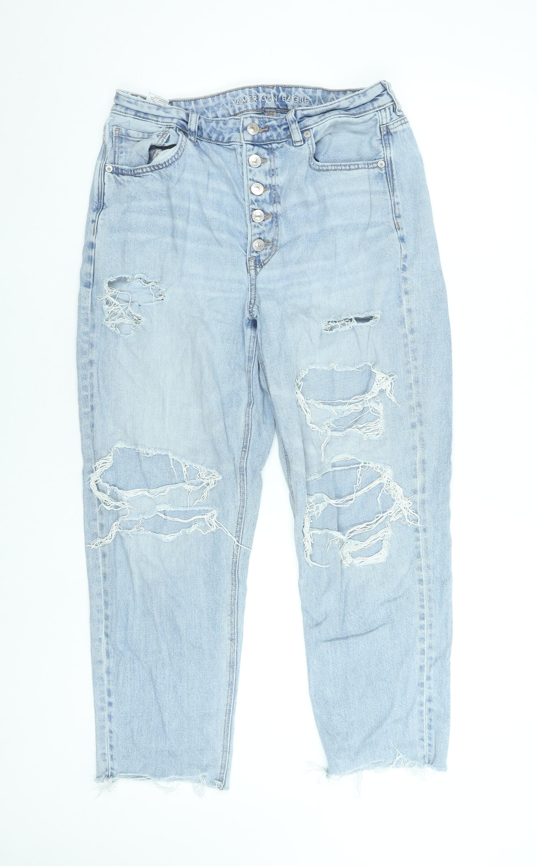 American Eagle Womens Blue Distressed High Rise Mom Jeans Size 12