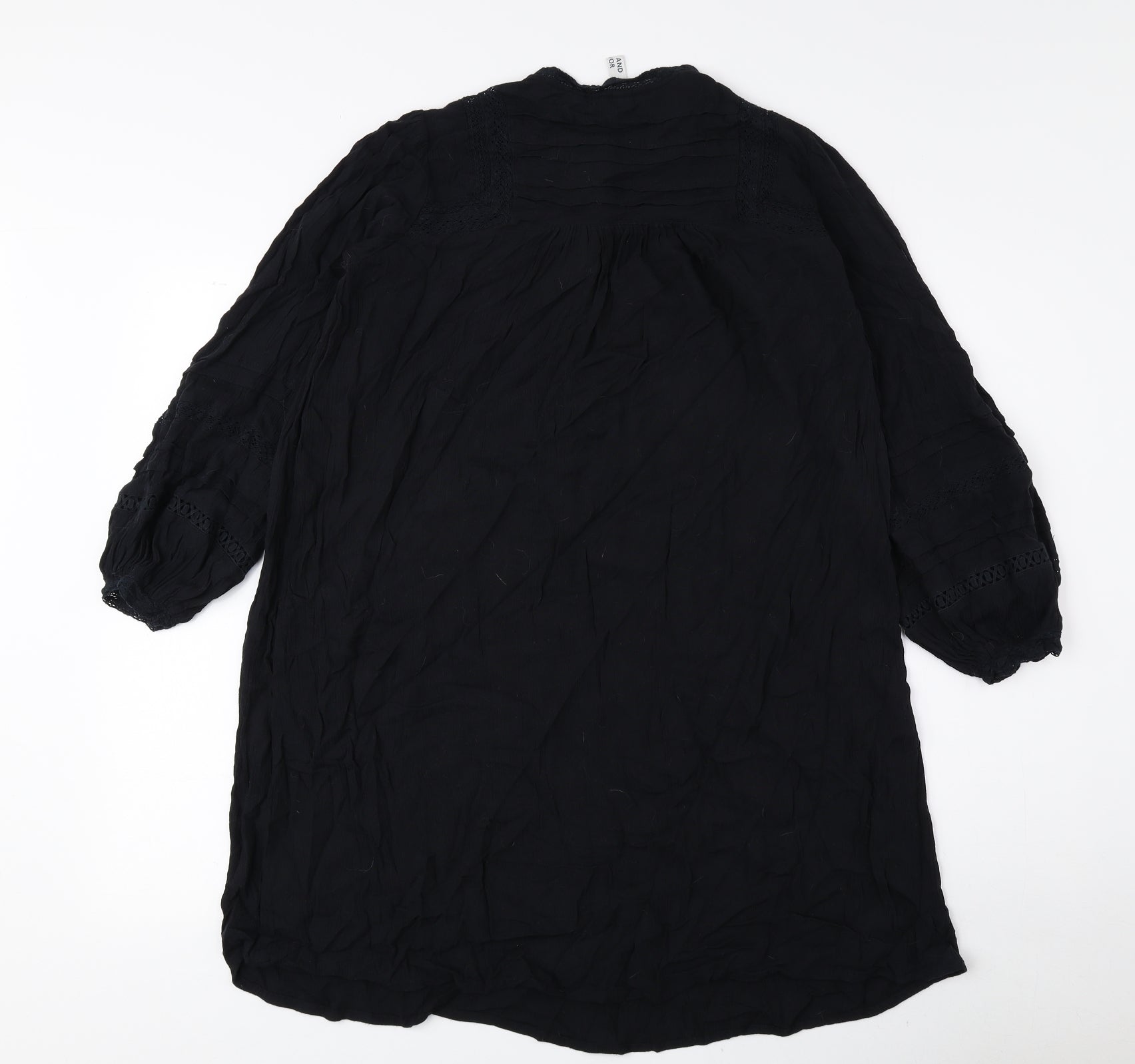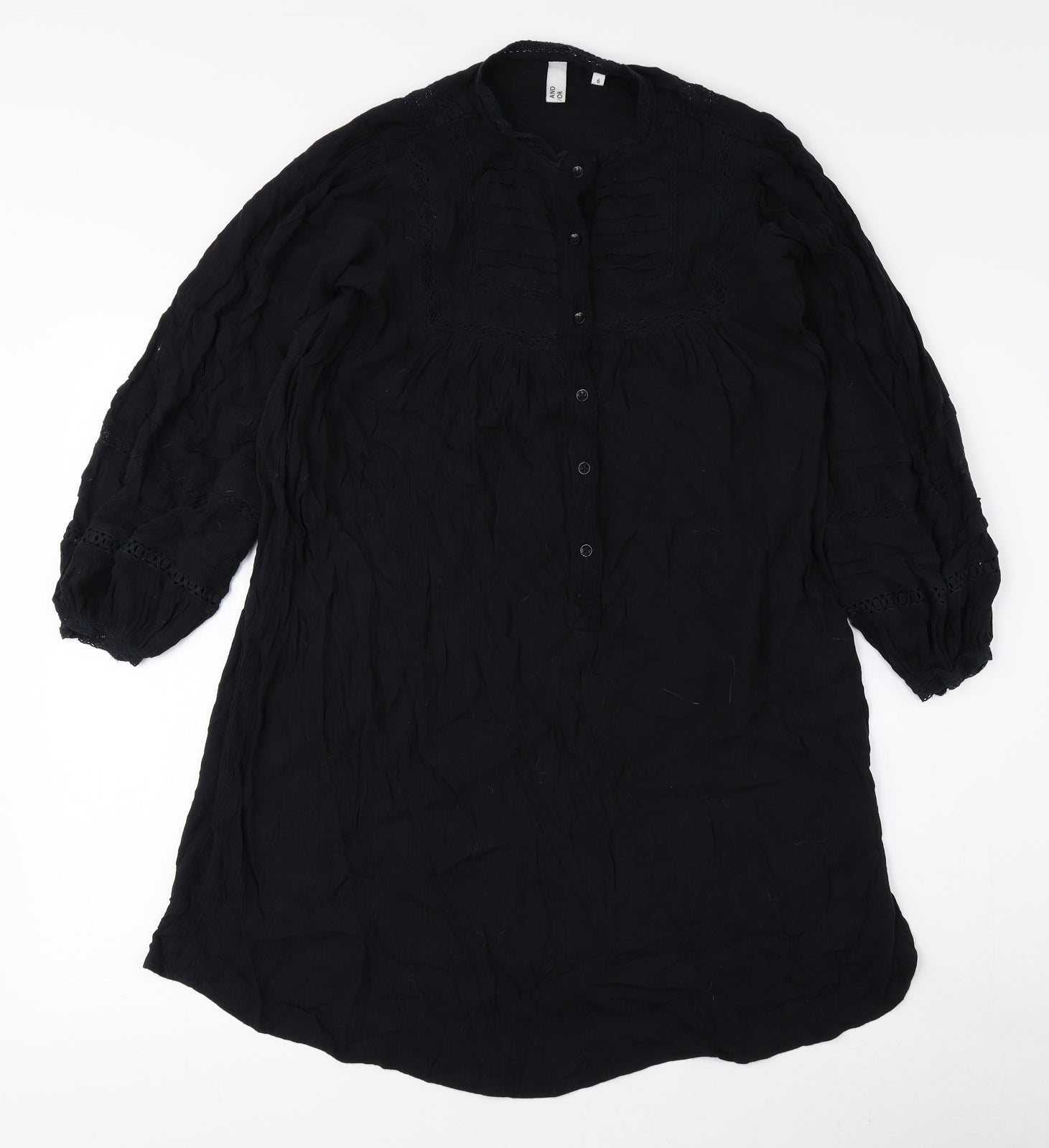 AND/OR Womens Black Viscose Shift Size 6 Round Neck Button - Lace Detail